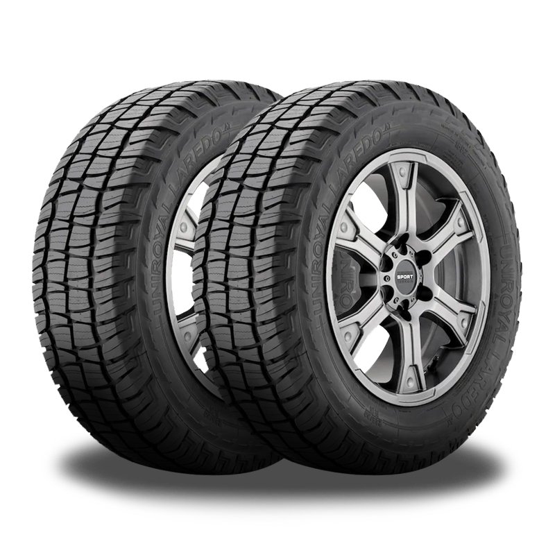 The Laredo AT is Uniroyal's On-Road All-Terrain tire designed for the drivers of pickup trucks, crossovers and full-sized SUVs looking for a tire that blends off-road traction with long-lasting on-road capability. With a design that is built to work hard both on and off the pavement, the Laredo AT is a tire for any driving condition. Uniroyal offers a 55,000-mile treadwear warranty with this model. Internal construction of the Laredo AT consists of twin steel belts supported by a dual-ply polyester body casing to manage ride comfort and durability. A single, nylon reinforcement ply is included for increased high-speed capability and responsiveness. It has M+S (Mud+Snow) symbol, which means it can perform on mud and light snow surface.