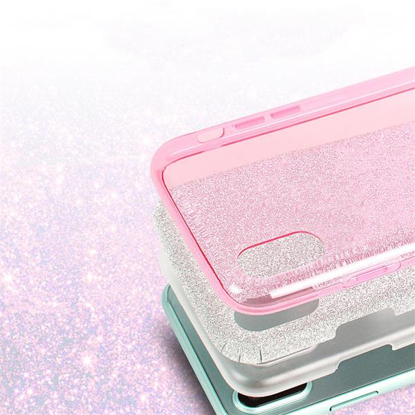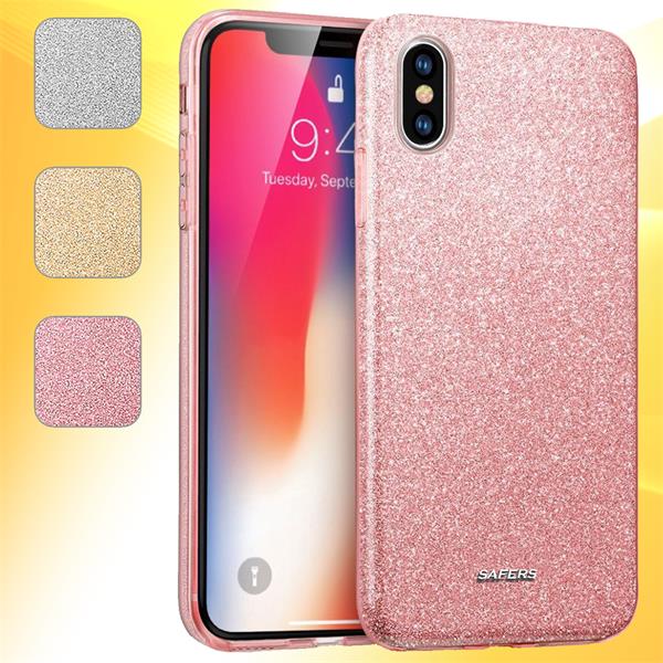 Our Shiny Case is a 3-part case with a colored transparent, a glitter layer made of silicone and a plastic inlay. Thanks to this design, the silicone absorbs shocks and impacts, while the hard plastic ensures a secure hold of your cell phone and also protects it from sharp objects. As well as giving the case overall much more stability than other comparable cases without a hard plastic inlay!