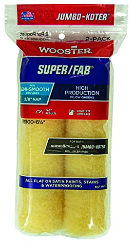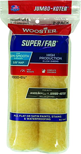 Includes (2) RR300 6.5 inch Roller covers. 6.5" long roller cover with 3/8" Nap. Offers exceptional capacity with all flat, eggshell or satin paints, stains, waterproofing. Golden yellow fabric, exclusively from Wooster, resists matting for complete coverage, smoother results. Use with RR028, RR013, RR014, RR323, R212, Jumbo-Koter roller frames.