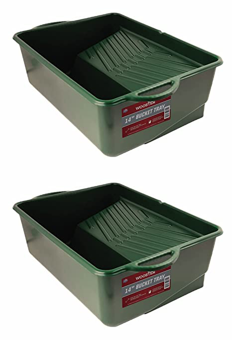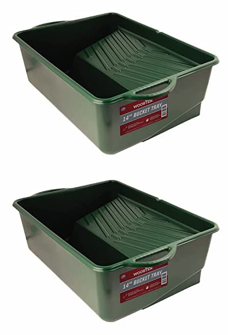 Includes (2) BR414 14 inch Paint bucket. 14" wide roll-off grid paint bucket-tray. Hybrid of a tray and paint bucket, excellent for 14", 12", and 9" rollers. Durable, green polypropylene resists solvents and paint buildup. Use with BR415-14 liner.