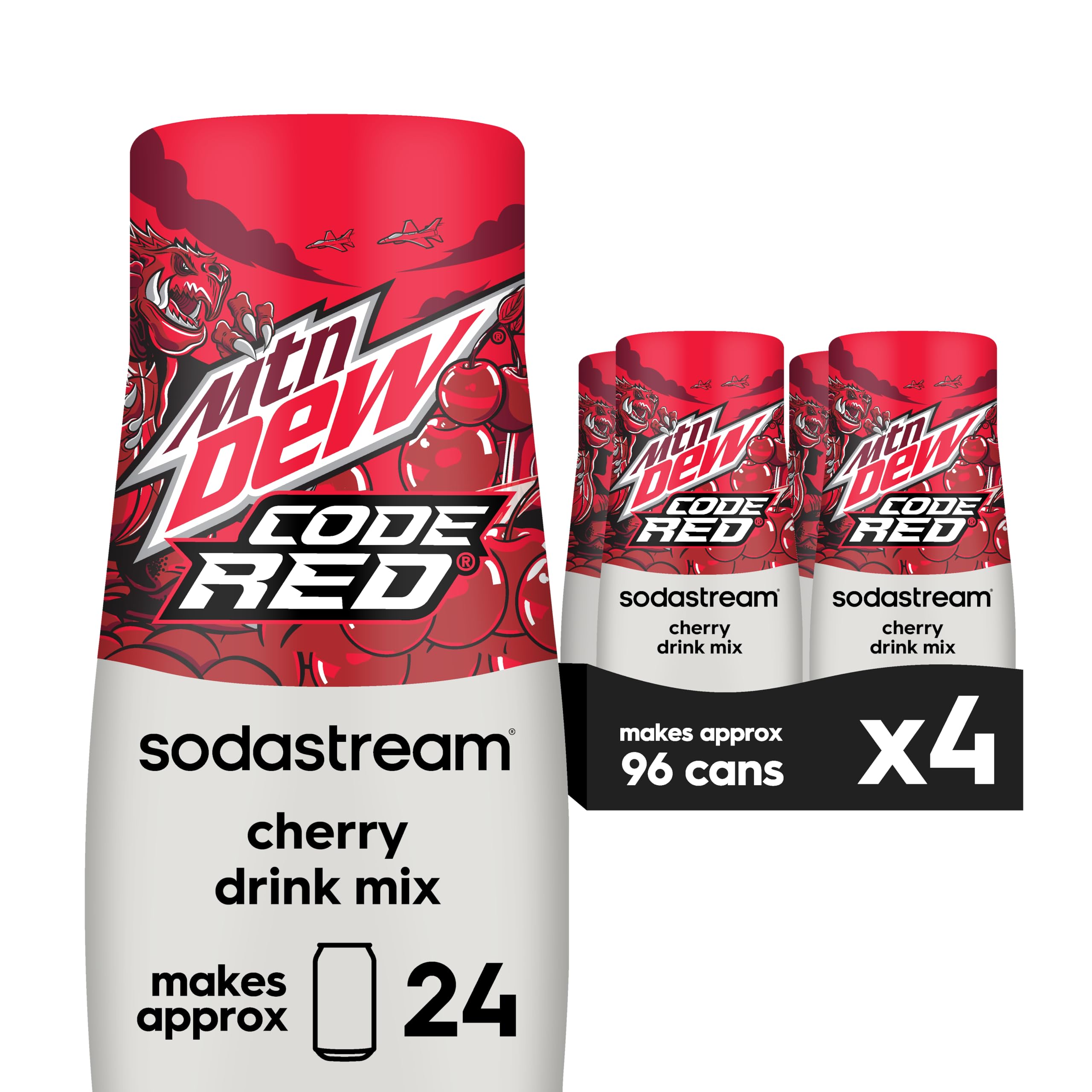 NEW! Made exclusively for SodaStream®, our Mtn Dew® Code Red® drink mix makes it easy to enjoy your favorite flavors at home. Mtn Dew® Code Red exhilarates and quenches your thirst with a rush of cherry flavor. Turn sparkling water into a drink for every occasion — simply add Mtn Dew® Code Red drink mix to fresh sparkling water for an exhilarating flavor experience any time of day. One SodaStream®. Endless Possibilities. Always fizz water before adding any flavor.