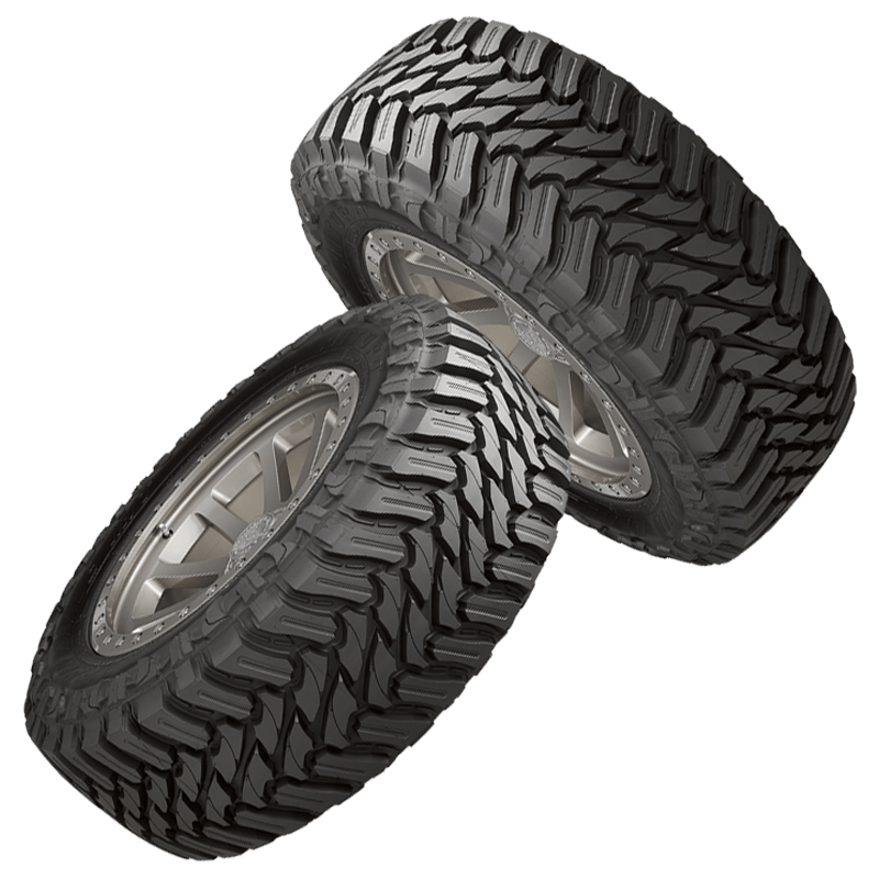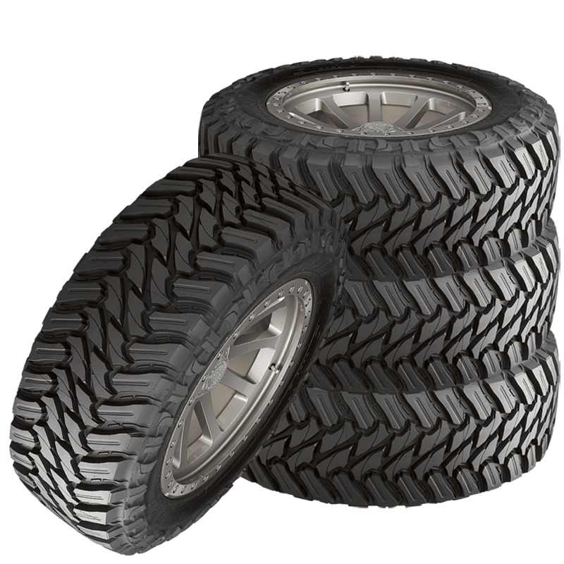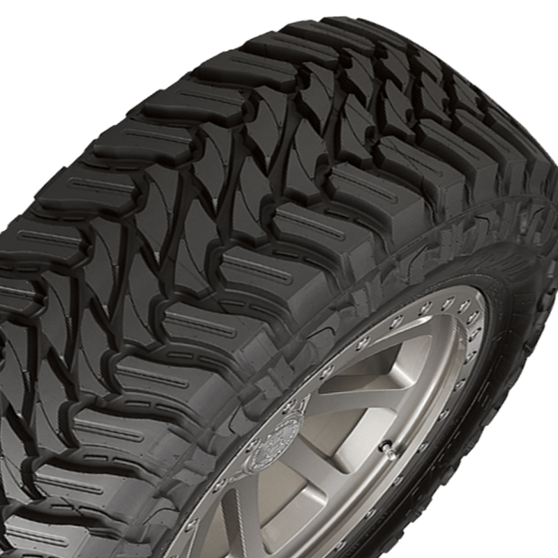 The Atturo Trail Blade M/T has one of the most aggressive cutting edge designs that are seen in an M/T tire. The sidewall is inspired by Karambit Type blades and is geared towards drivers looking for both performance and looks to add to any light truck, SUV, and many other 4x4's. Trail Blade tires have a cut and chip resistant tread copmound, with an 8 or 10 ply construction, based on size along with a 3-ply sidewall (on LT sizes) that provides added strength and durability in the roughest of off-road conditions.The Trail Blade M/T features built-in stone throwers between the shoulder treads that effectively kick-out rocks and other debris to increase traction. While the tire's alternating scalloped shoulder blocks add to lateral traction on dirt, sand and other loose surfaces.