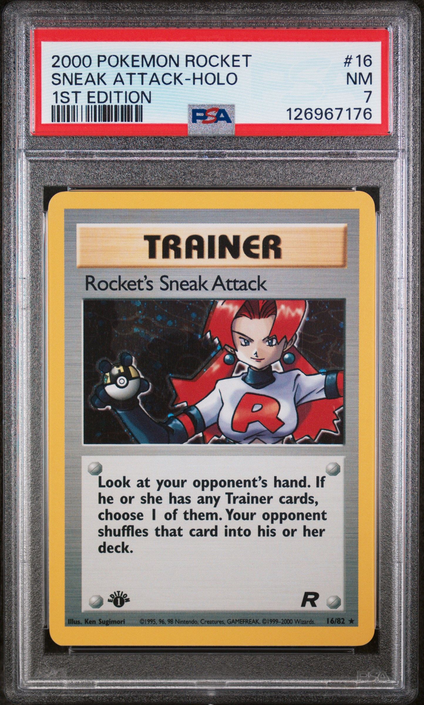 | 2000 Pokemon Team Rocket 1st Edition Holo 1st edition SNEAK ATTACK PSA 7 #16 |