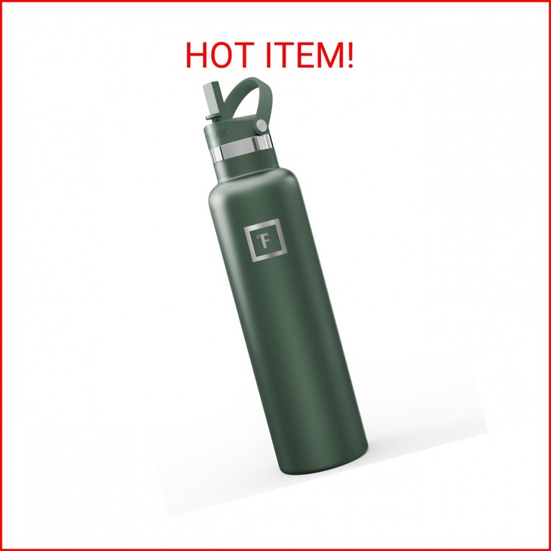 IRON °FLASK Camping & Hiking Hydration Flask with Straw, Narrow Mouth Insulated Stainless Steel Sports Water Bottle - Dark Pine 24 oz - Straw (1 Lid)