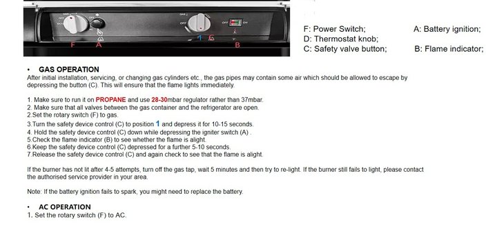 | Power Supply | LP gas/DC 12V/AC AC 110V-120V AC 220V-240V | |||