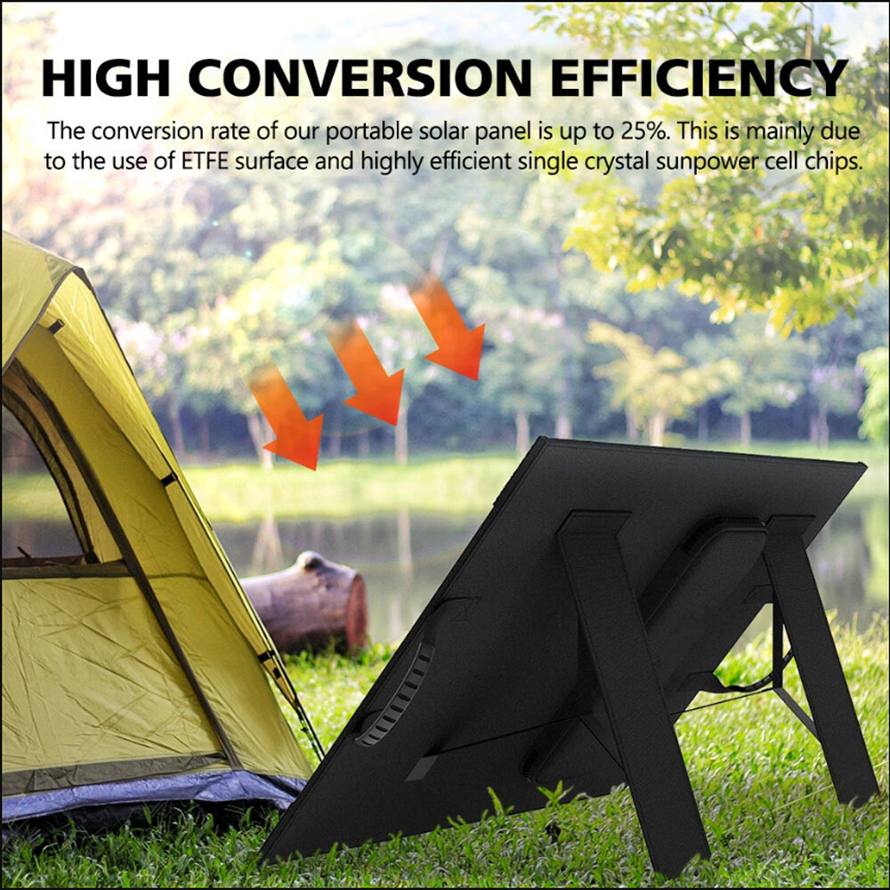 1. High Conversion Efficiency: Our portable solar panel boasts a conversion efficiency of up to 25%. This is primarily due to the use of ETFE thin-film and high-efficiency monocrystalline silicon solar cell chips.
