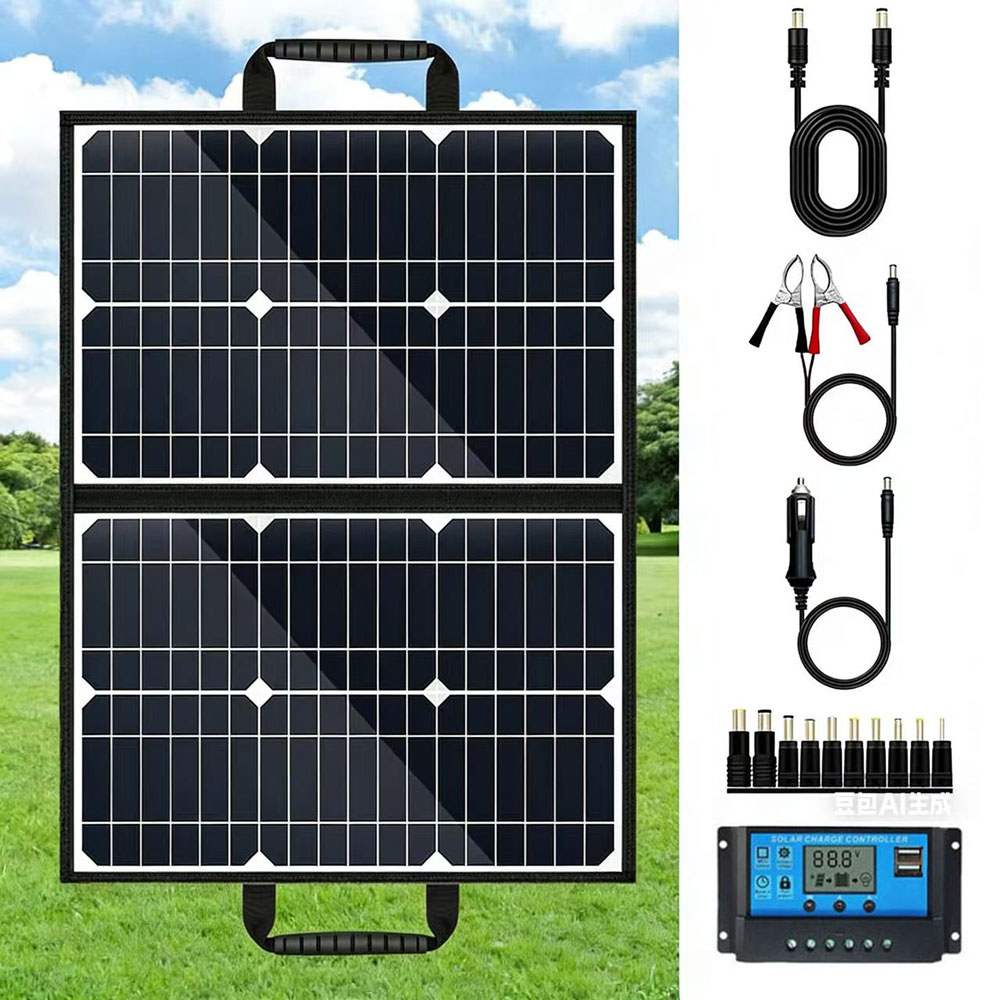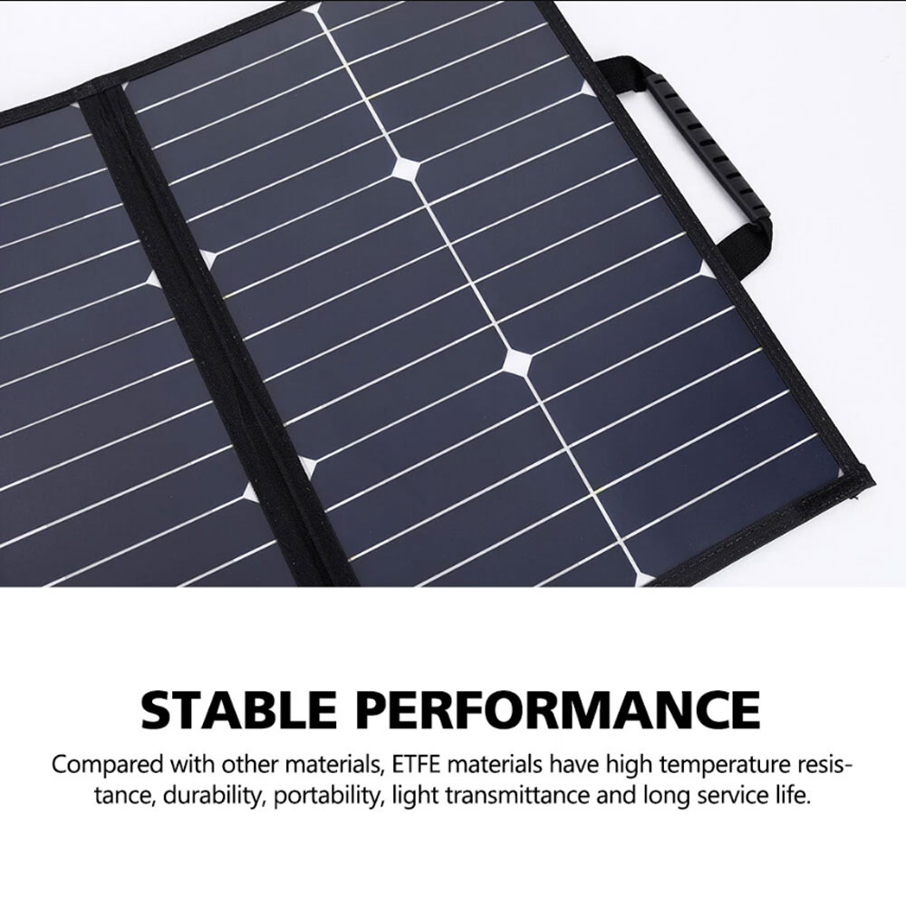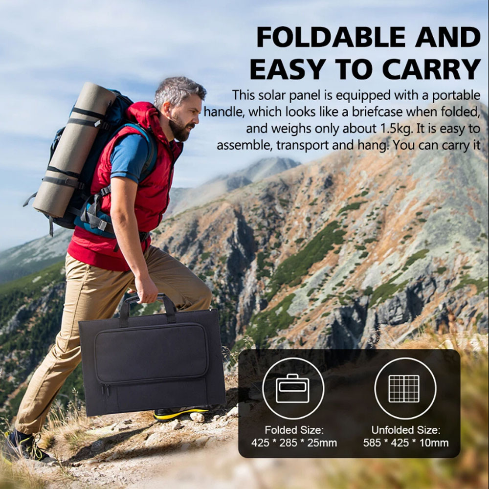3. Foldable and Portable: This solar panel features a convenient carrying handle, folding into a briefcase shape and weighing only about 1kg. It is easy to assemble, transport, and hang, making it convenient to carry with you.