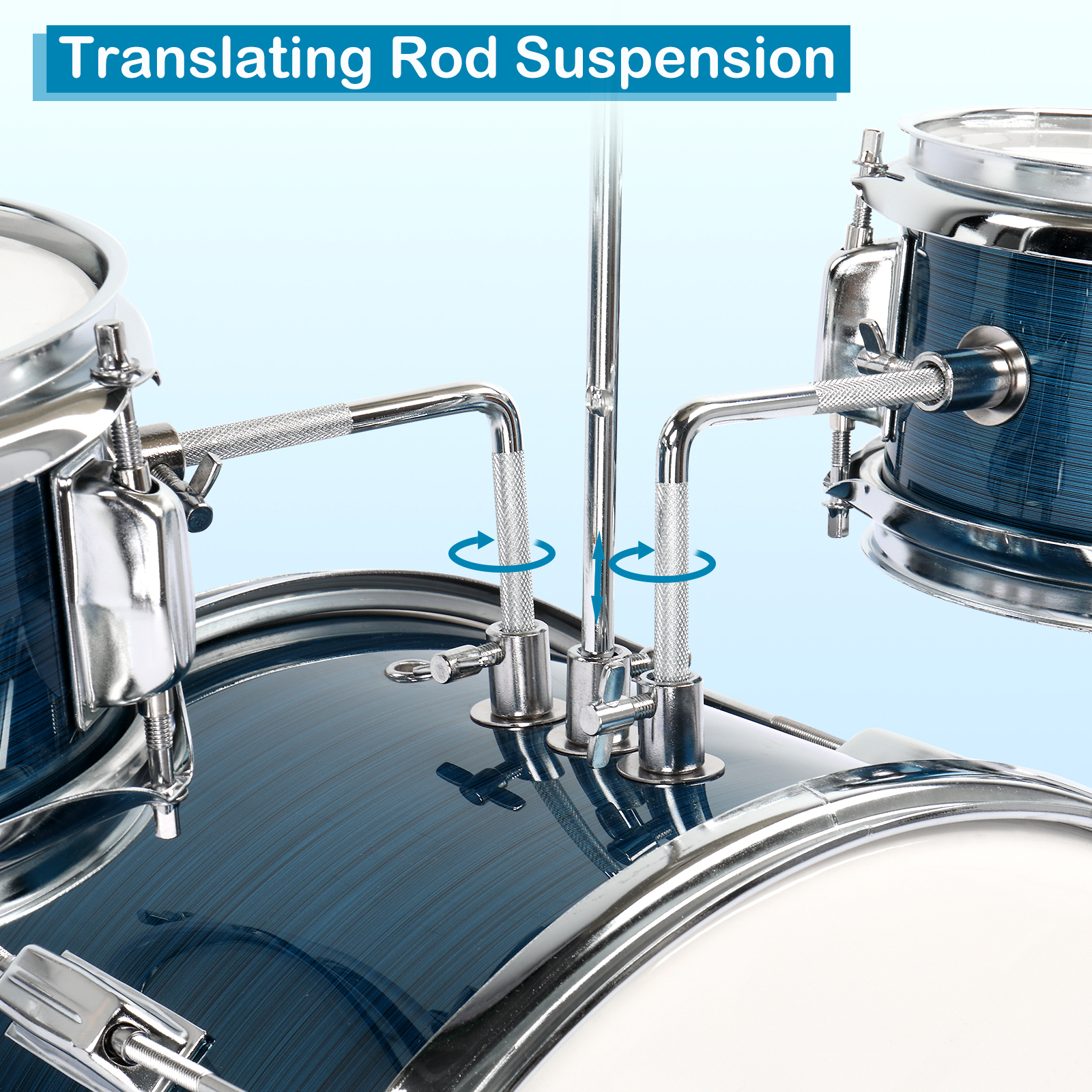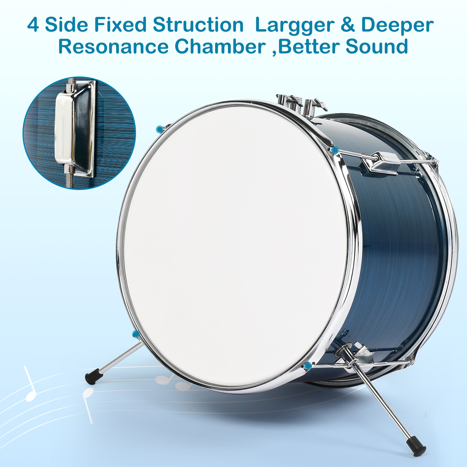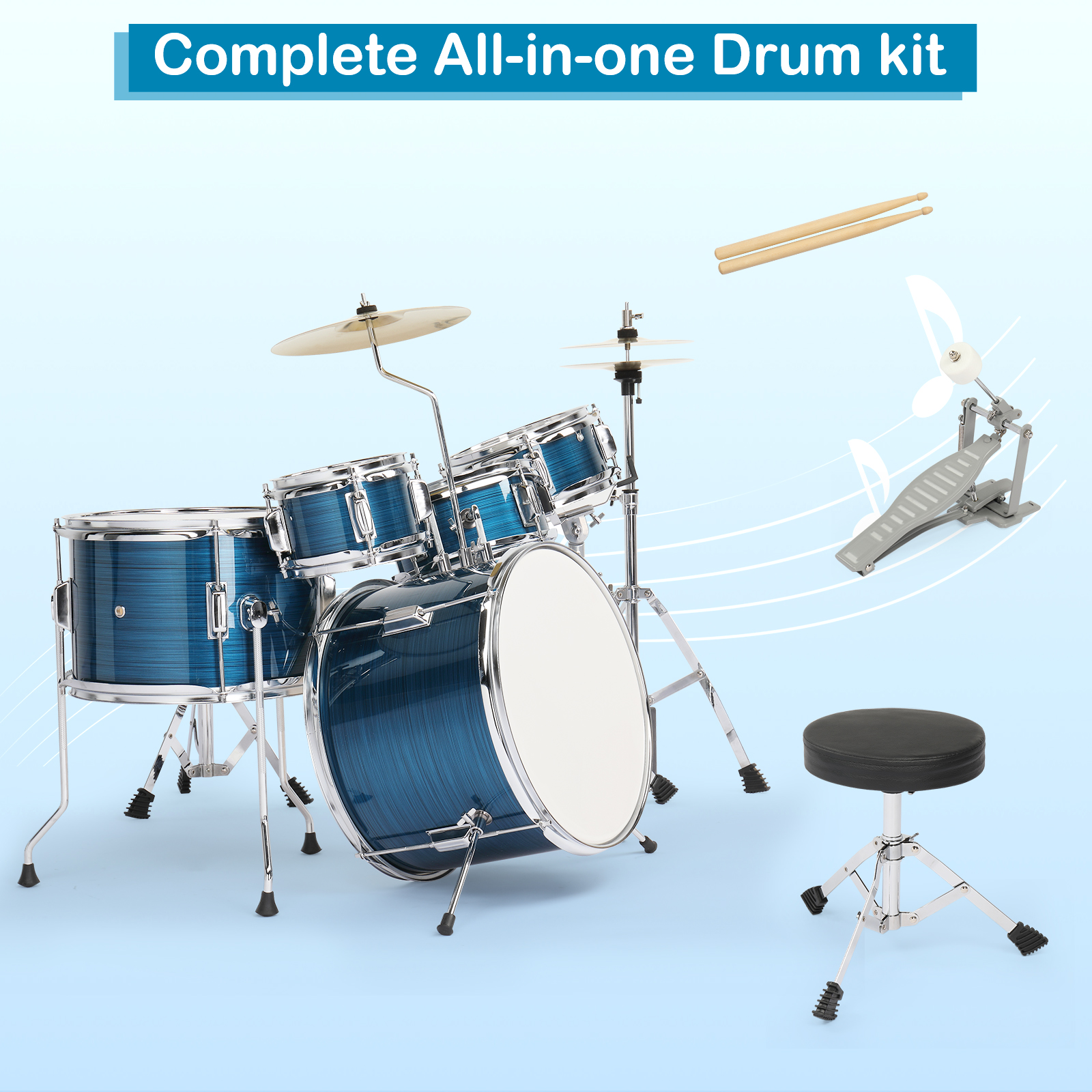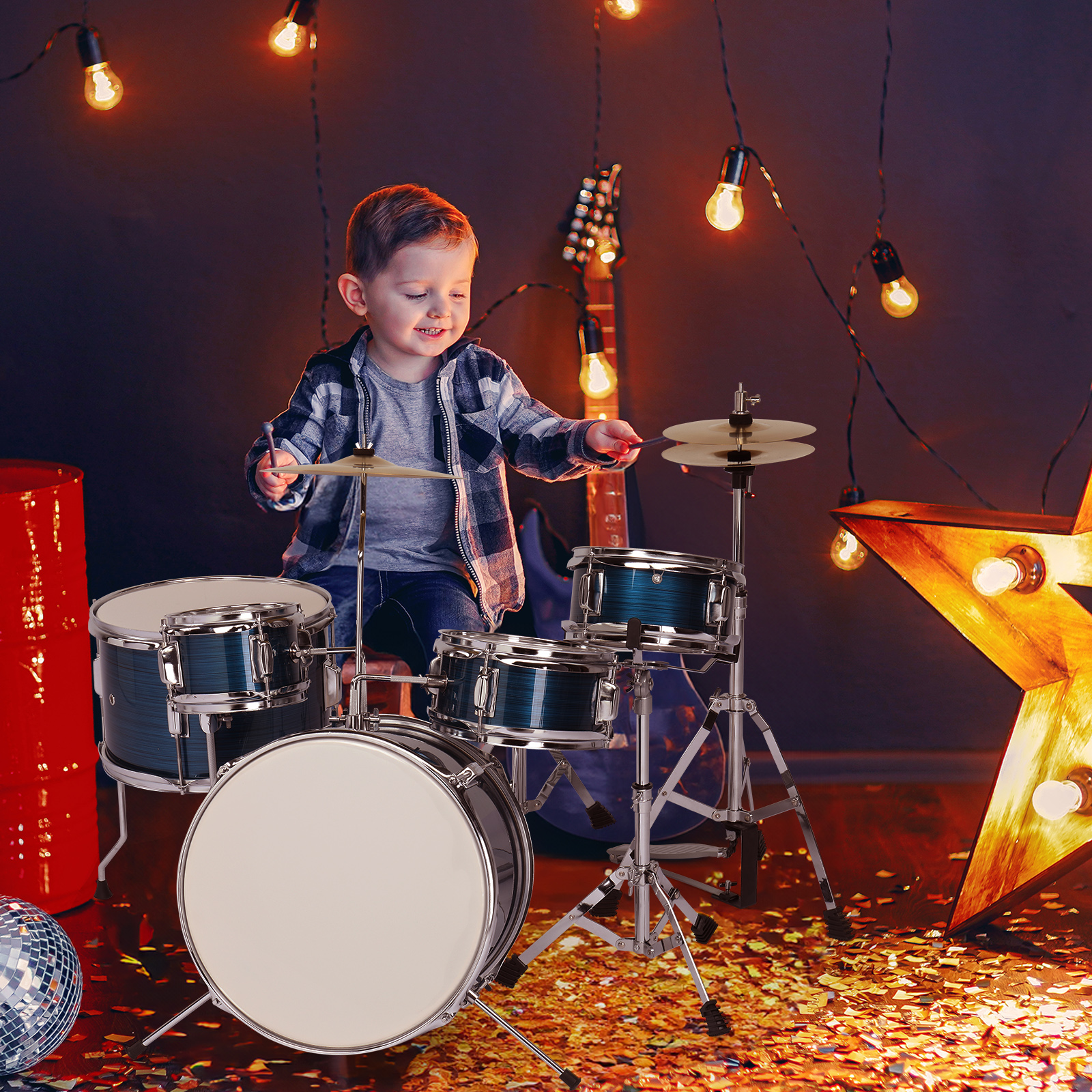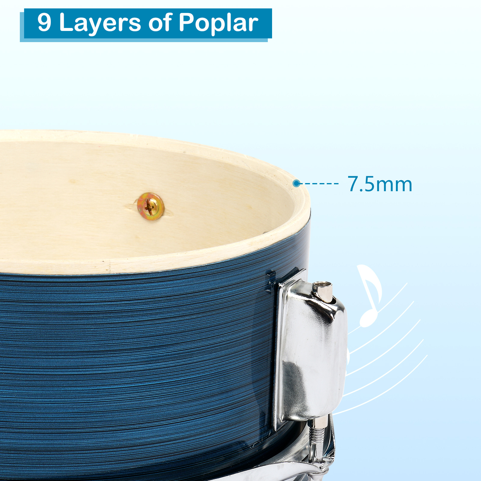 Ktaxon 14"x10" 5-Pieces Junior Kids Beginners Drum Set Kit Pedal Drum Stick Wrench Drum Stool Brushed Blue