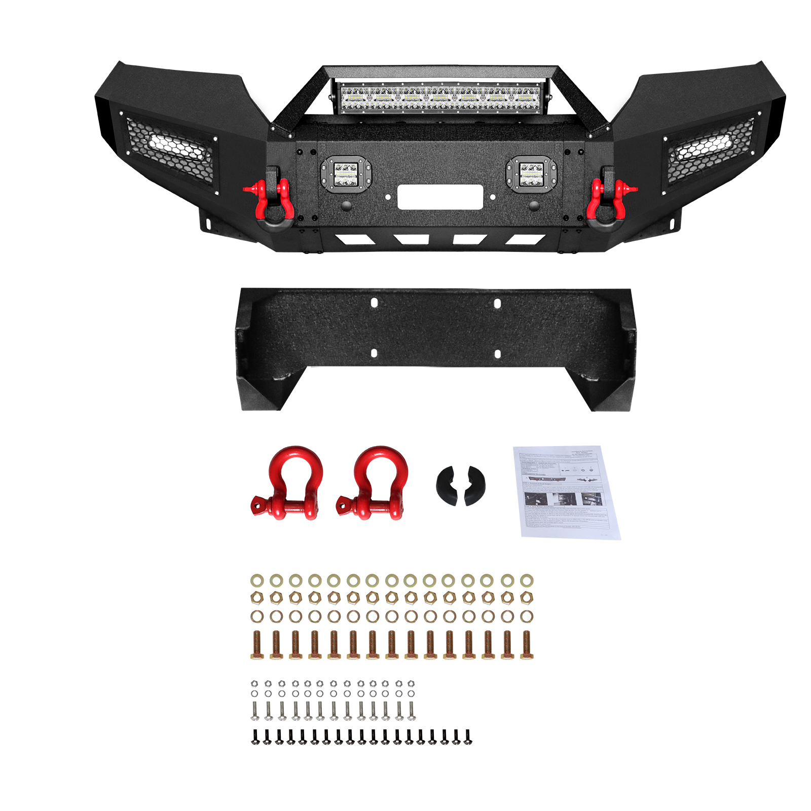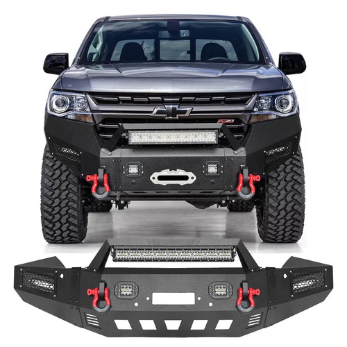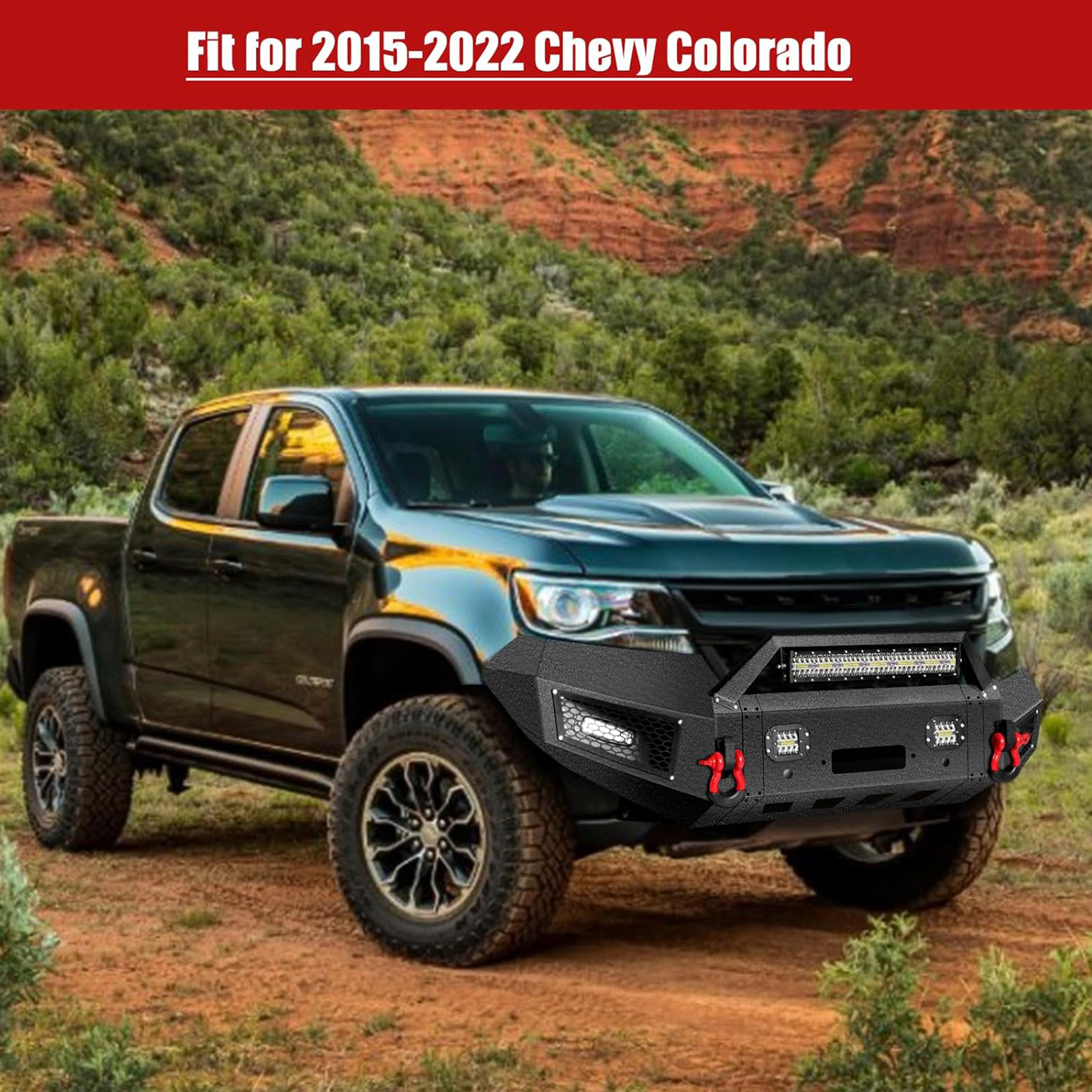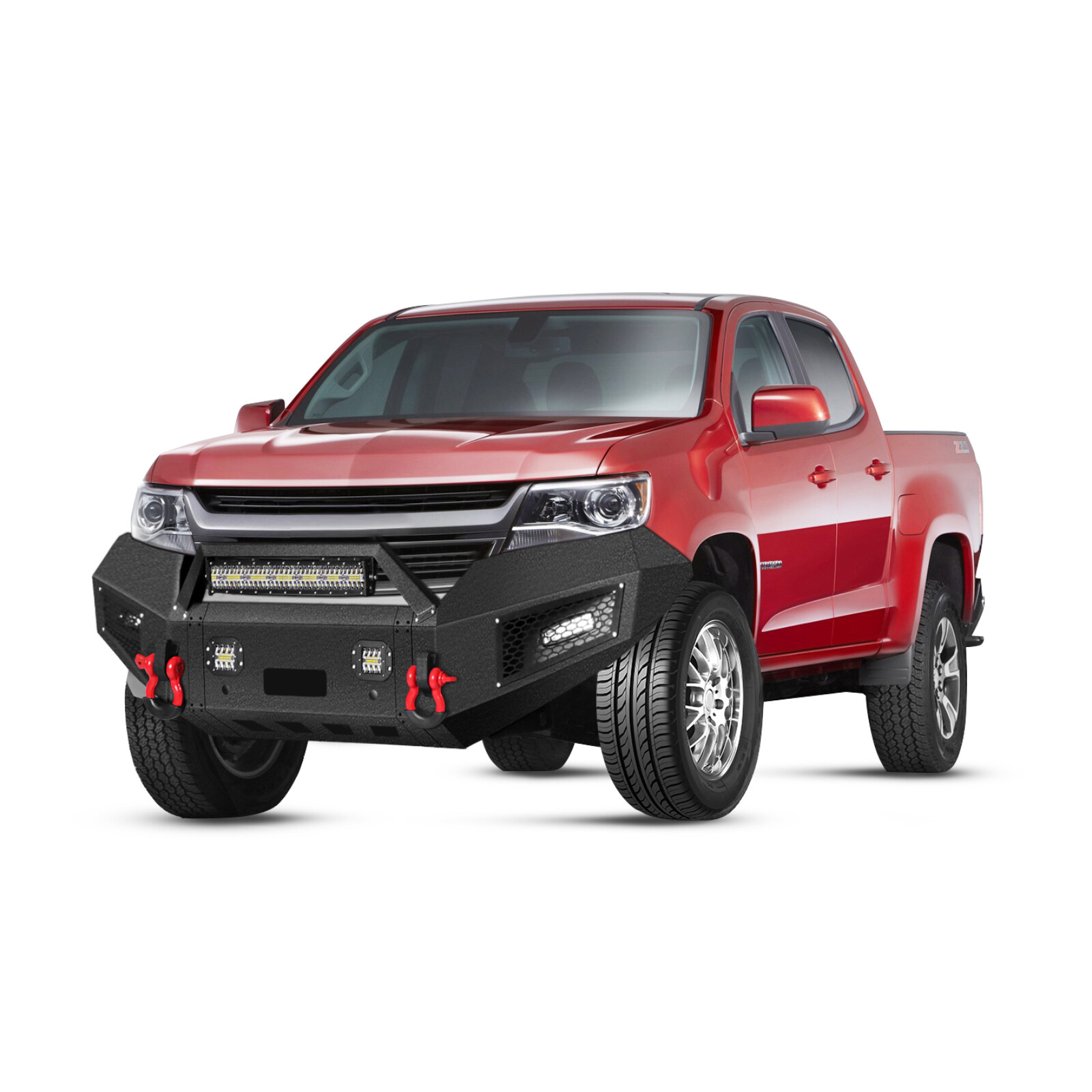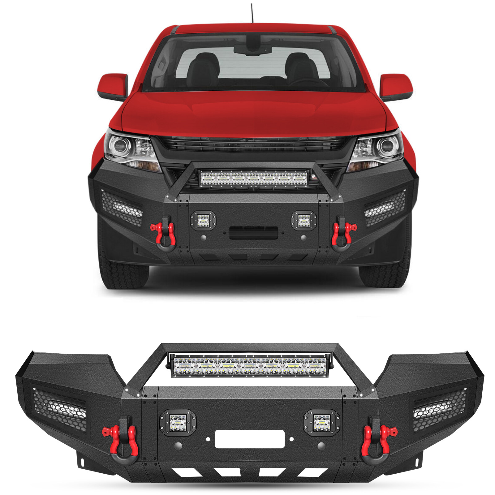 Aaiwa For 2015-2022 Chevy Colorado Off-Road Texture Black Steel Front Bumper with Winch Plate & LED Light Bar & LED Work Lights & 4.75T D-rings Combo Kit