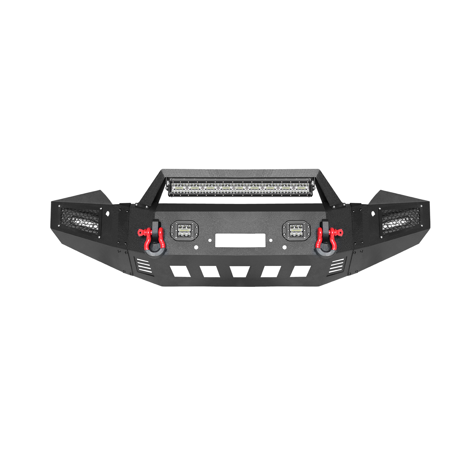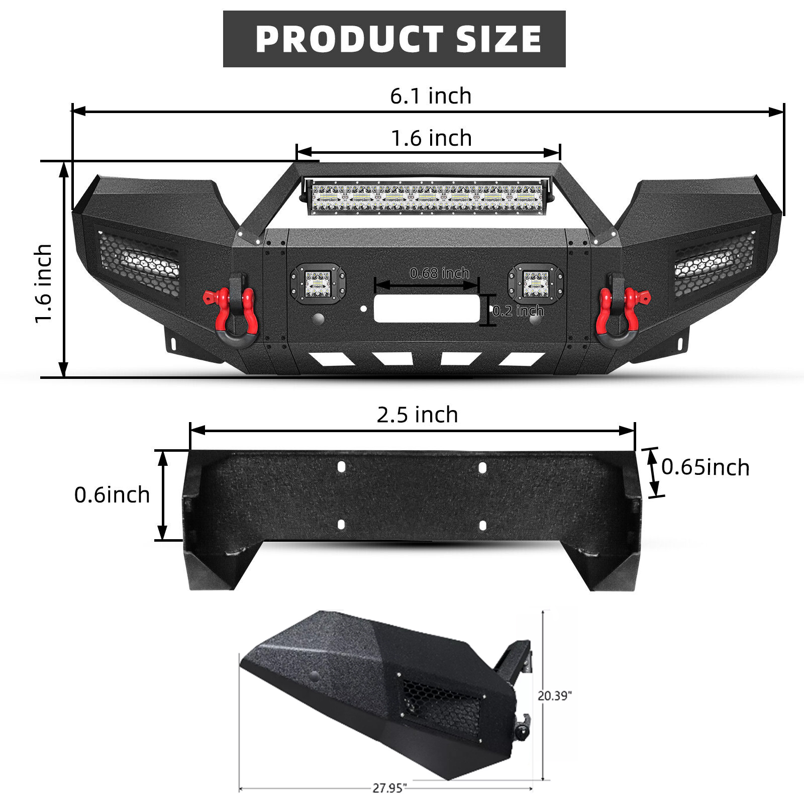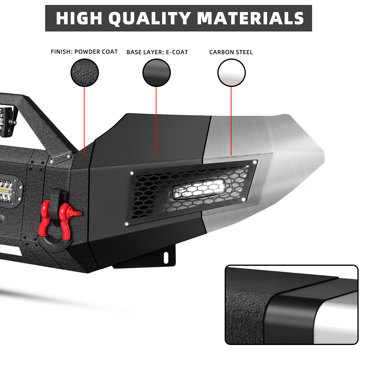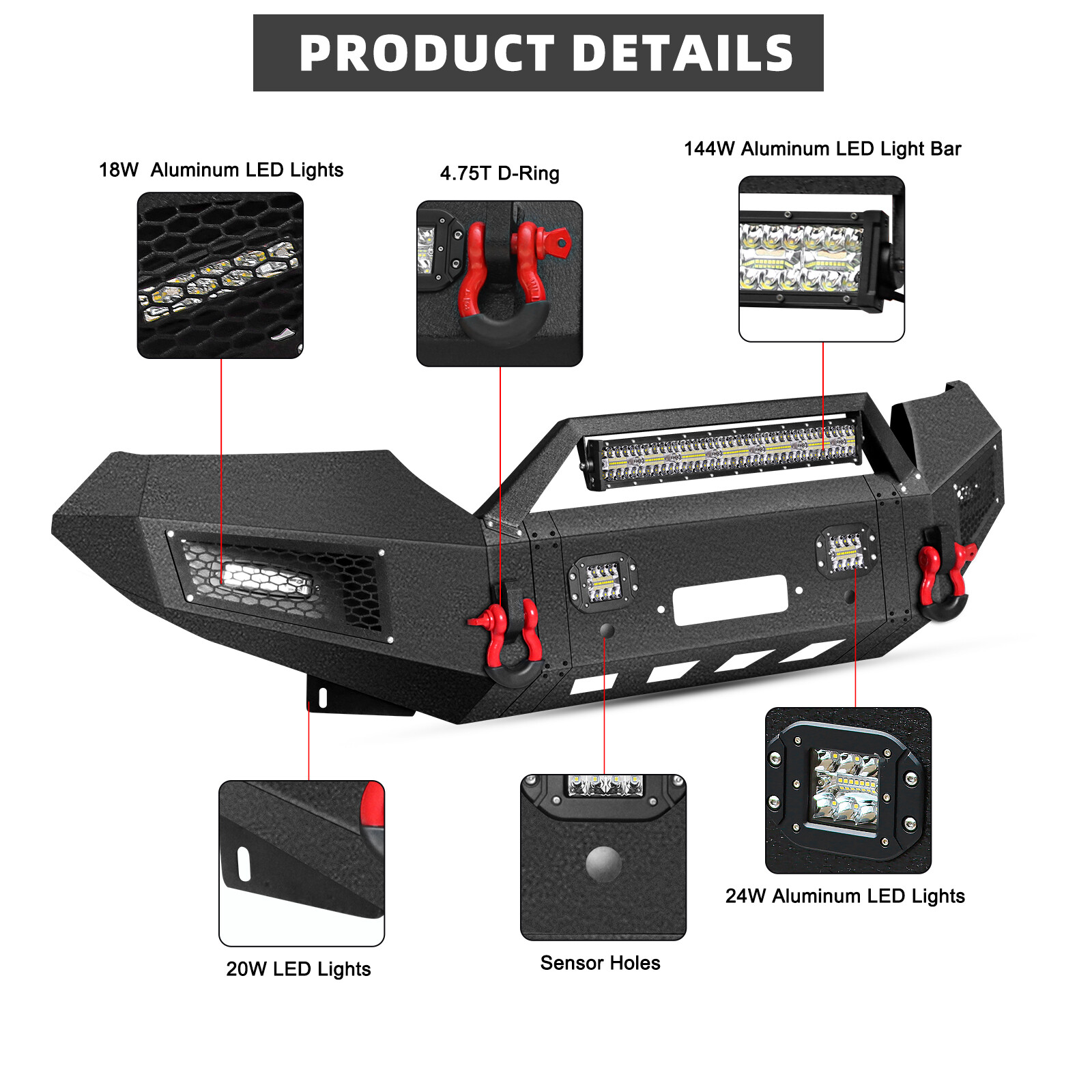 Aaiwa For 2015-2022 Chevy Colorado Off-Road Texture Black Steel Front Bumper with Winch Plate & LED Light Bar & LED Work Lights & 4.75T D-rings Combo Kit