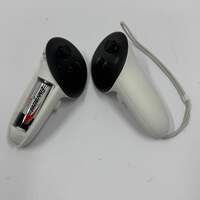 The left and right screens are in good condition, there are some light, but noticeable, marks from use, but nothing too significant. The casing is in good cosmetic condition with some light, but noticeable, scuffs, scratches, and wear from use. All of the ports are in good condition and clean. The headband is in excellent condition, clean and has no odor. The controller(s) are in good condition with some light, but noticeable, scuffs, scratches, and wear from use. The facial interface is in good condition with some light, but noticeable wear. There may be some small cracking, scuffs, scratches, and/or wear. The left controller is missing the battery cover.