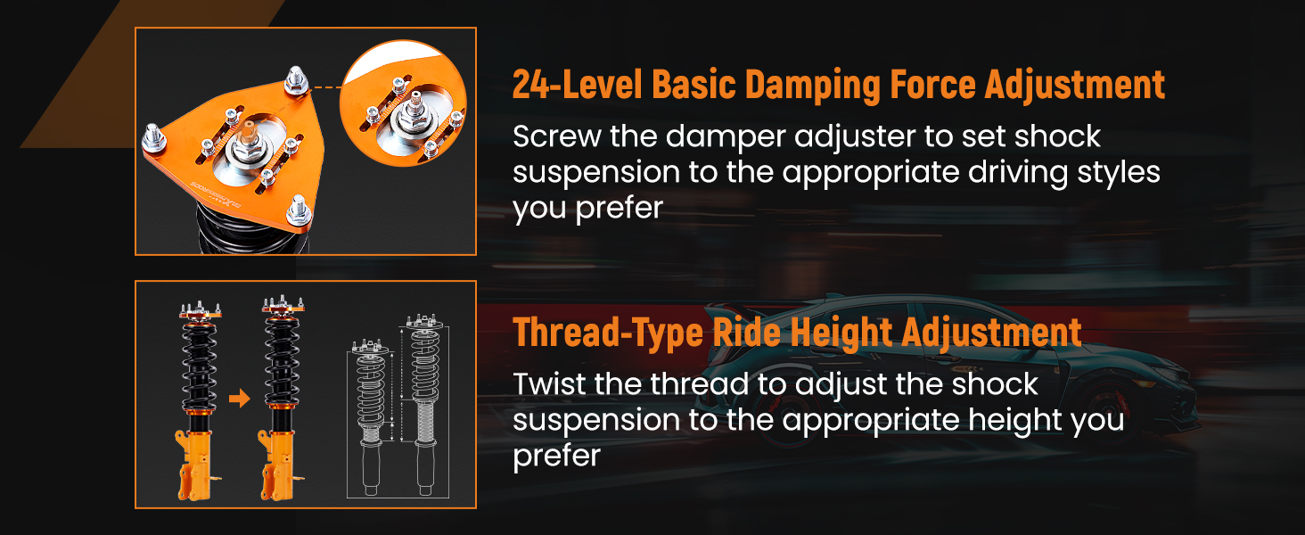 - 24 Levels Damping Force Adjustable: Provides an extensive range of adjustability, making it easy to customize for various purposes and achieve desired ride comfort.