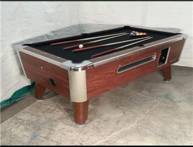 This table features a single-piece 3/4" slate. We have gone completely through it and replaced the pocket liners and gulley boots with new parts. The exterior will show some signs of use as the table is used, but any damage has been repaired and cosmetically rejuvinated to look very nice.