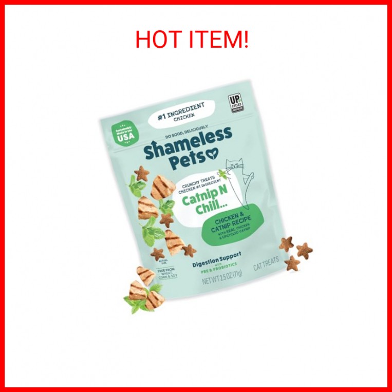 Shameless Pets Crunchy Cat Snacks & Treats – Healthy Cat Treats for Indoor Cats & Kittens with Catnip, Real Chicken & Digestive Support, Catnip N Chill (2.5 oz)