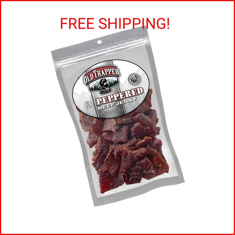 Old Trapper Beef Jerky, Peppered 8 Ounce Pack, Spicy Meat Snacks for Lunches or Between Meals, 11 Grams of Protein, Zero Grams of Fat, and 70 Calories per Serving (Pack of One)