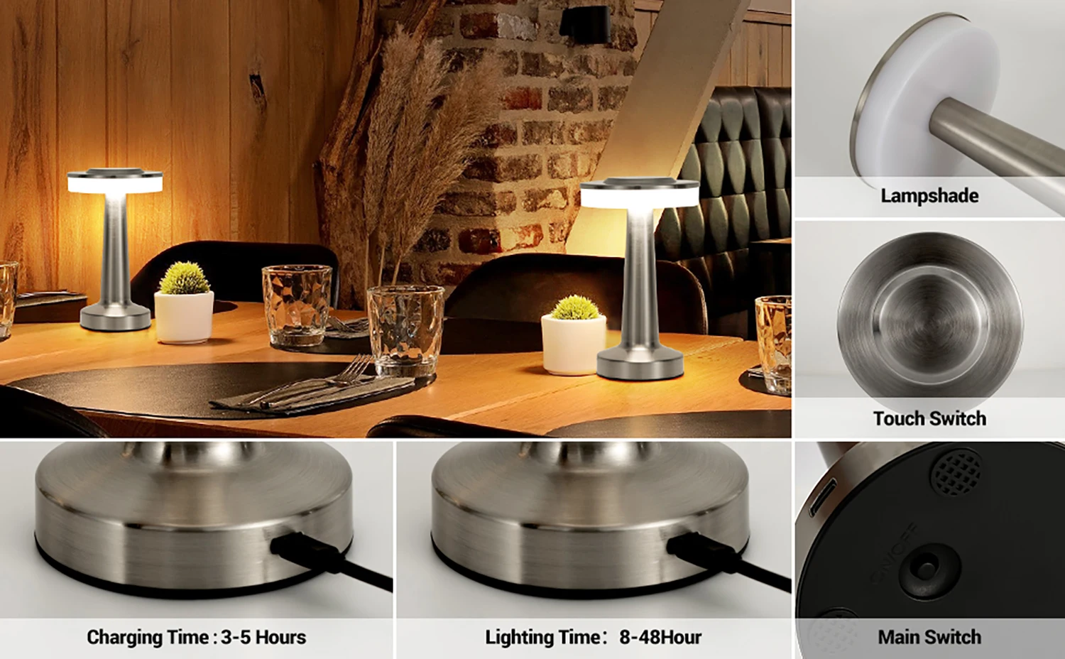 Energy-efficient LED technology ensures long-lasting illumination while reducing power consumption. This portable and versatile lamp is perfect for use on desks, bedside tables, dining areas, and more, offering both functionality and aesthetic appeal.