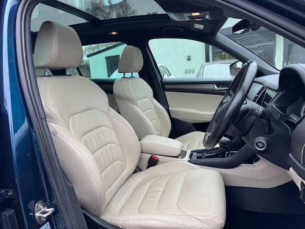 This 2021 Skoda Kodiaq TSI SE L is a superb example, having been owned by just one person since new. This impressive seven seater SUV boasts a powerful 2.0 litre petrol engine and a capable four wheel drive system, making it ready for any adventure. Its Euro 6 emissions classification ensures it meets modern environmental standards. Inside, you'll find a luxurious beige leather interior, complemented by a opening panoramic sunroof that floods the cabin with natural light. For added comfort and convenience, this SE L model is equipped with a Winter Pack featuring heated front seats , alongside advanced Park Assist with front and rear sensors to make manoeuvring effortless. The Lane Assist system also provides an extra layer of safety on your journeys.Experience the dynamic performance of this Kodiaq, which accelerates from 0 to 60 miles per hour in a swift 7.5 seconds. This impressive acceleration, combined with its spacious seven seat layout and four wheel drive capability, sets it apart from many other vehicles in its class. The inclusion of the panoramic sunroof and the comprehensive Park Assist system further enhance its appeal, offering a more enjoyable and stress free driving experience for you and your passengers.We have a large variety of lenders to allow you to finance you car, please contact us directly to gain a bespoke quotation. All of our cars come with a nationwide, comprehensive warranty which can be extended up to 36 months if you wish.