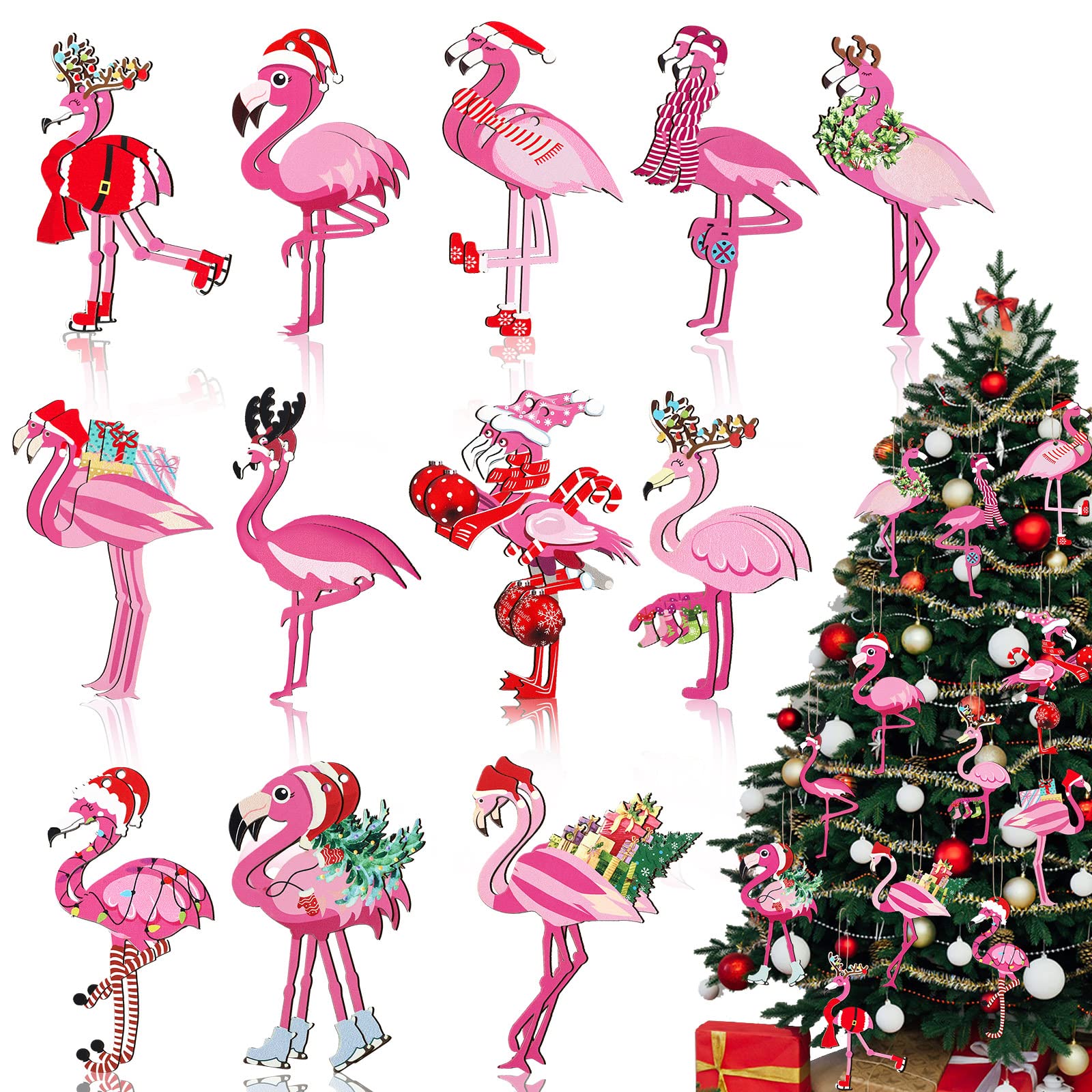 Bucherry 24 Pcs Flamingo Christmas Tree Ornament Pink Red,pink