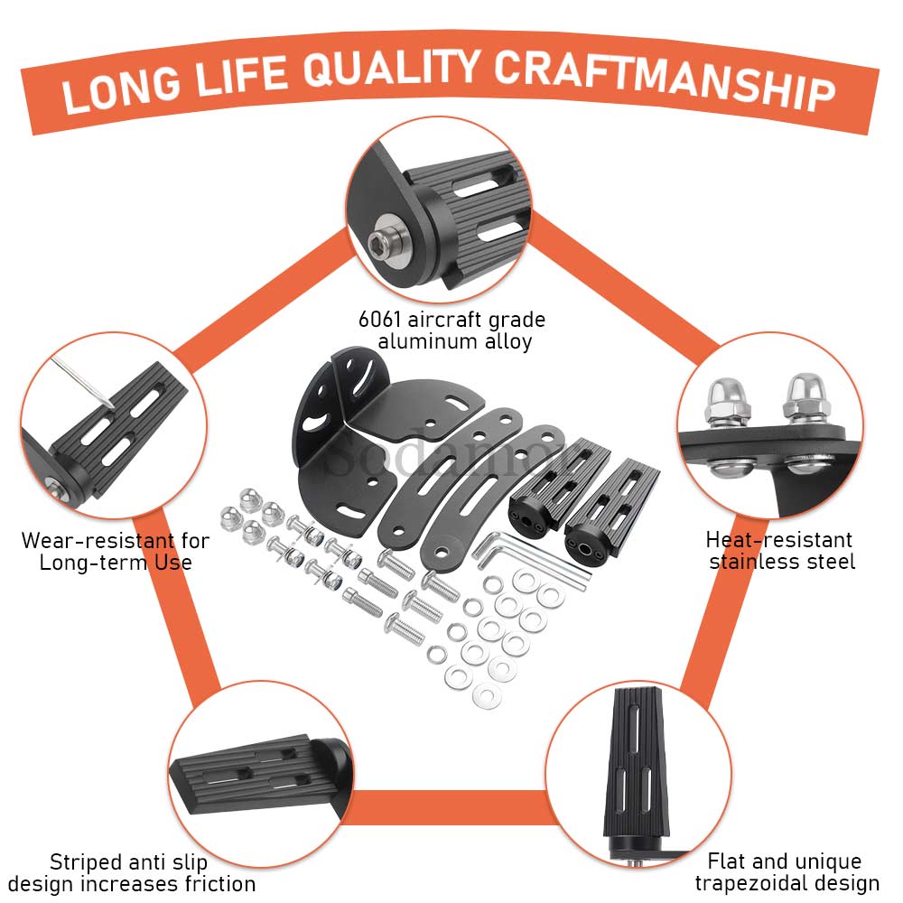 RELAX AND STRETCH OUT:Floor board Highway Peg Mount set gives increased comfort and the opportunity to stretch out and relax on the road.These highway pegs provide more comfortable leg position with an adjustable range of motion.Allows a cooler ride by placing your feet away from the ATV’s heat source.