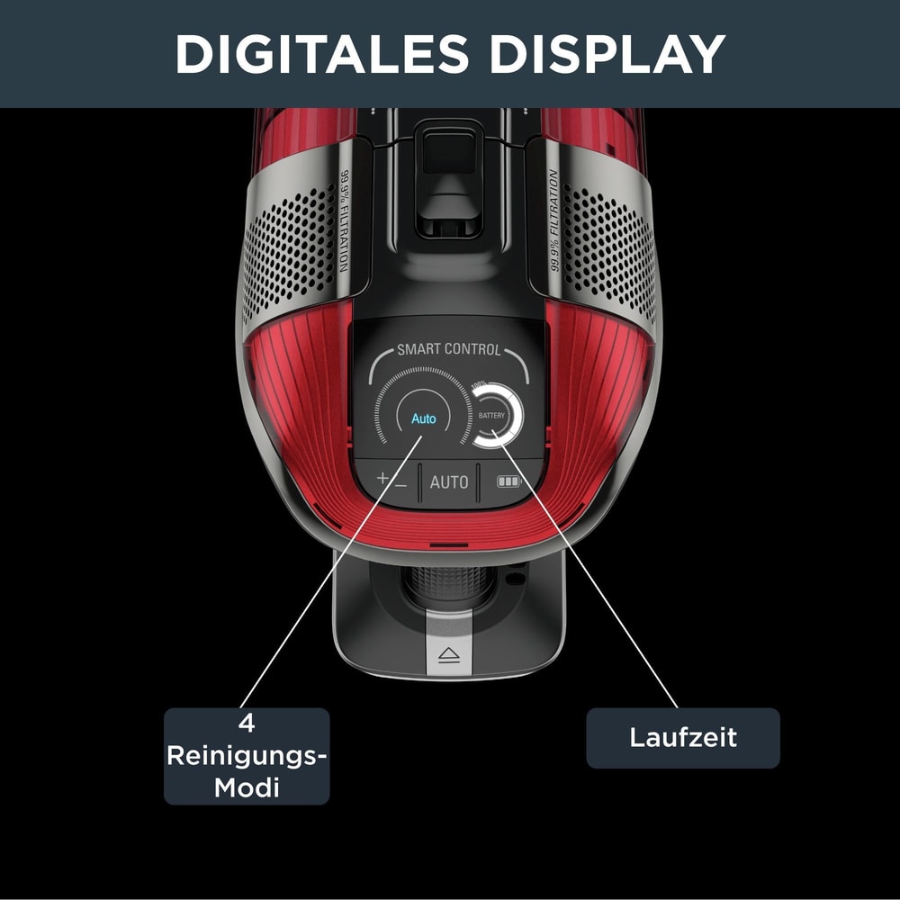 Das Smart Control Display zeigt die verbleibende Laufzeit in Echtzeit an und sorgt so für eine optimierte Reinigung. Der Rowenta X-Force Flex 12.60 ist mit nützlichem Zubehör ausgestattet, darunter eine LED-beleuchtete Mini-Turbobürste, eine Fugendüse, eine Sofadüse sowie integrierte Möbelbürsten. Der Staubsauger ist ideal für Haushalte mit Haustieren, da das spezielle Tierhaarzubehör auch hartnäckige Verschmutzungen problemlos entfernt. Zudem lässt sich der Staubsauger bequem über die mitgelieferte Ladeschale aufladen und dank des wechselbaren Akkus noch flexibler einsetzen.