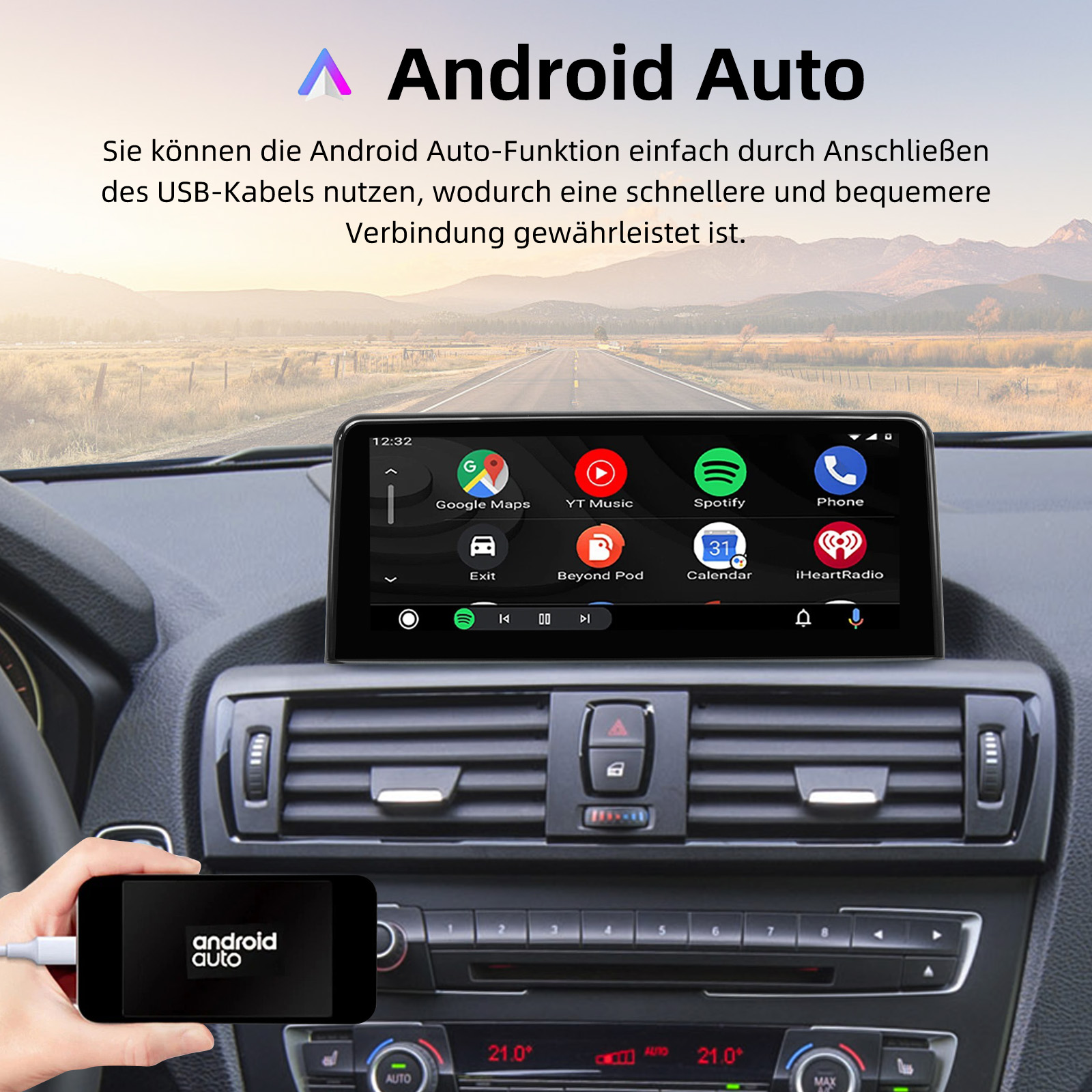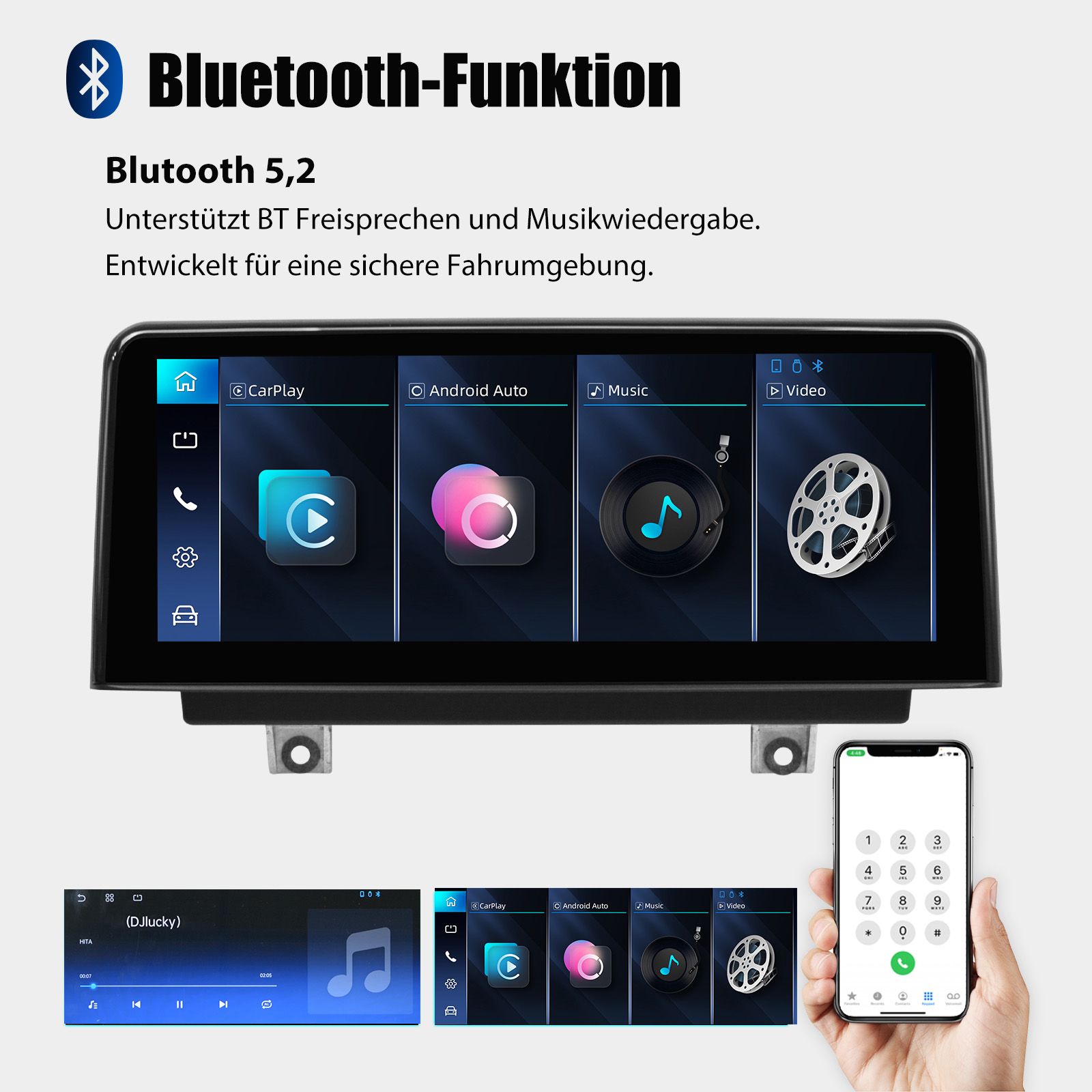 FM/AM/RDS-Radio und Bluetooth: Unterstützt Bluetooth 5,2, mit integriertem Mikrofon, damit Sie während der Fahrt freihändig telefonieren können. Unterstützt den Zugriff auf das Telefonbuch, die Musikwiedergabeschnittstelle usw. ——Unterstützt alle Original-Auto-Host-Funktionen wie Original-Auto-Host-Radio, CD-Player usw. Bei Verwendung der FM/AM/RDS-Radiofunktion schalten Sie bitte wieder auf das Original-Fahrzeugsystem um.