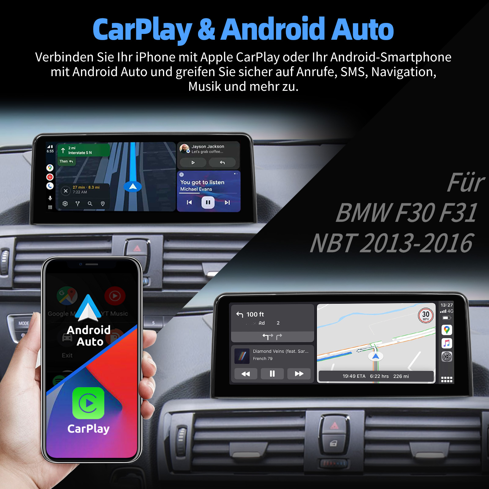 Apple Carplay & Android Auto: Tauchen Sie ein in ein nahtloses und benutzerfreundliches Infotainment-Erlebnis mit Apple CarPlay & Android Auto. Verbinden Sie Ihr iPhone mit Apple CarPlay oder Ihr Android-Smartphone mit Android Auto und greifen Sie sicher auf Anrufe, Textnachrichten, Navigation, Musik und vieles mehr zu. Mit intuitiver Bedienung über den Touchscreen oder Sprachsteuerung haben Sie alle Funktionen bequem zur Hand, während Sie sicher am Steuer bleiben. Nutzen Sie Ihre bevorzugten Apps und bleiben Sie jederzeit verbunden, während Sie den Blick auf die Straße gerichtet haben. Machen Sie Ihr Fahrzeug zu einem erweiterten Hub für Ihre mobilen Geräte und erleben Sie eine neue Dimension des Infotainments.