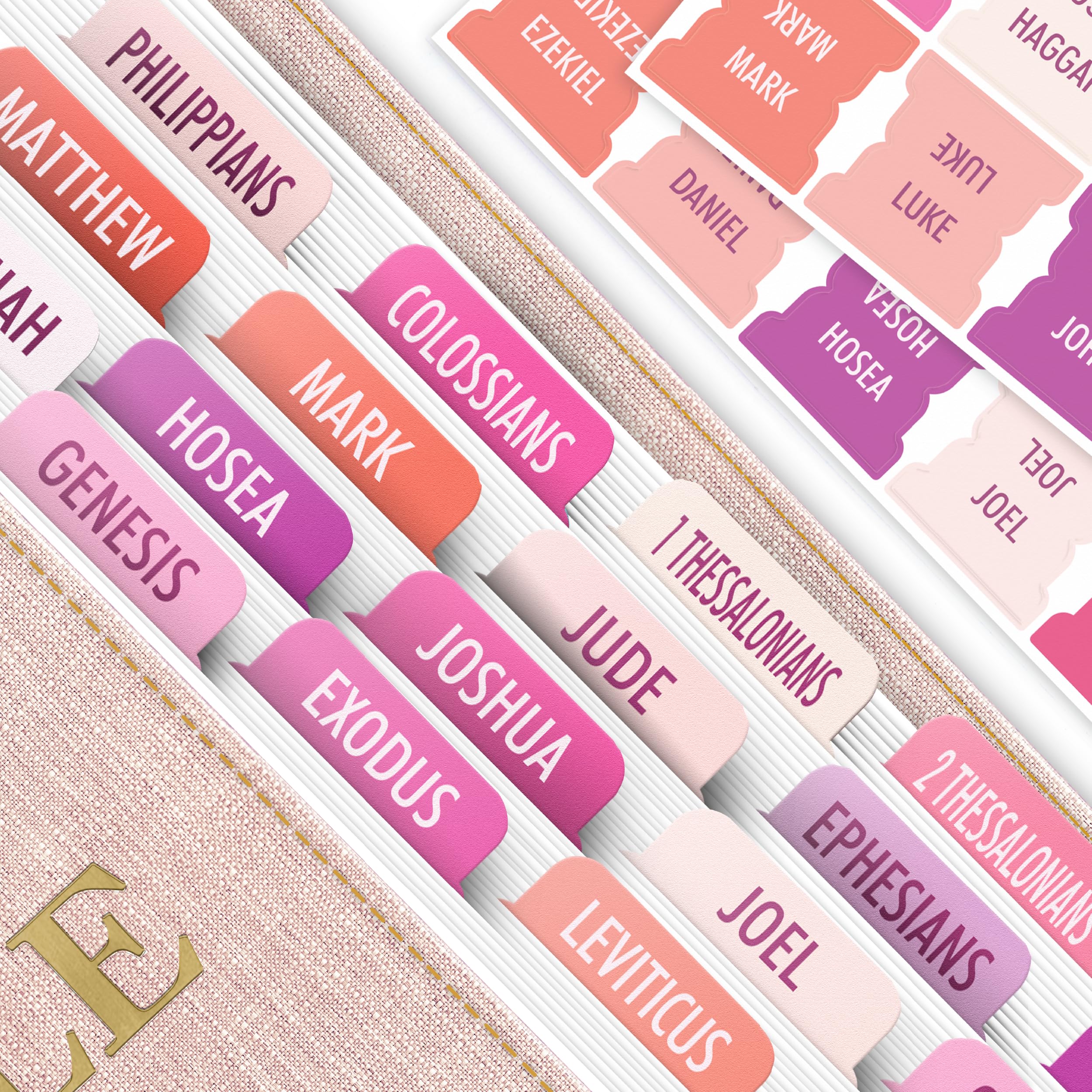 Pink Bible Tabs, 90 Large Print Bible Index Tabs for Study Bible, Laminated