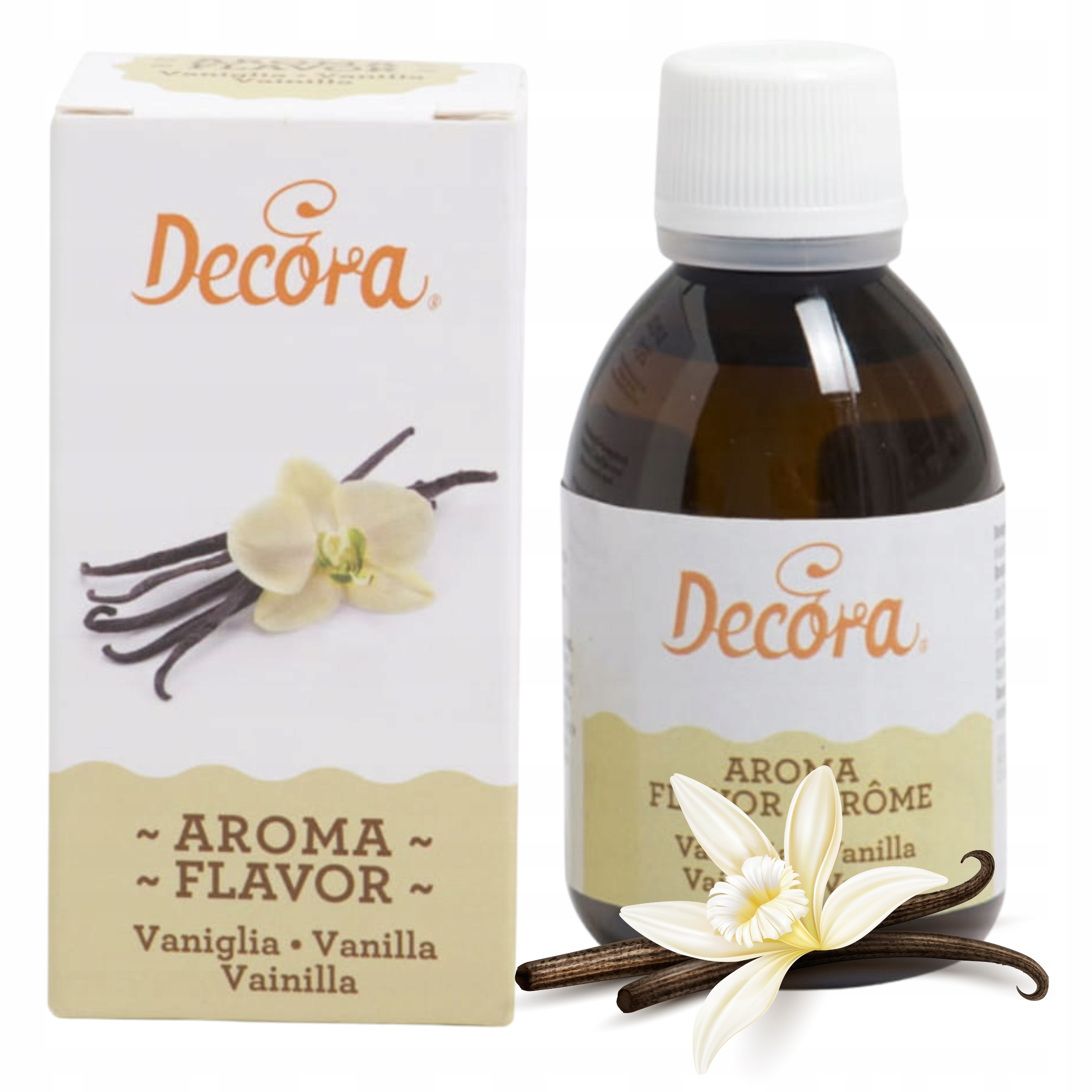 Produktdetails: flüssiges Vanillearoma, Glasflasche, Inhalt 60 ml, Nettogewicht 50 g, Marke Decora, Hersteller-Code 9260306, EAN 8024622039196.