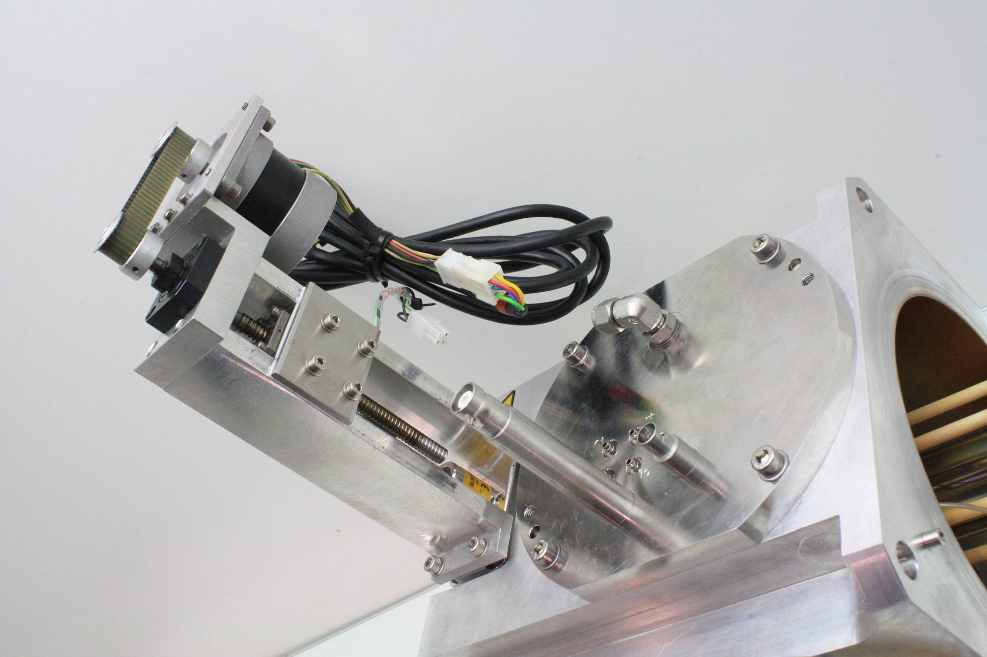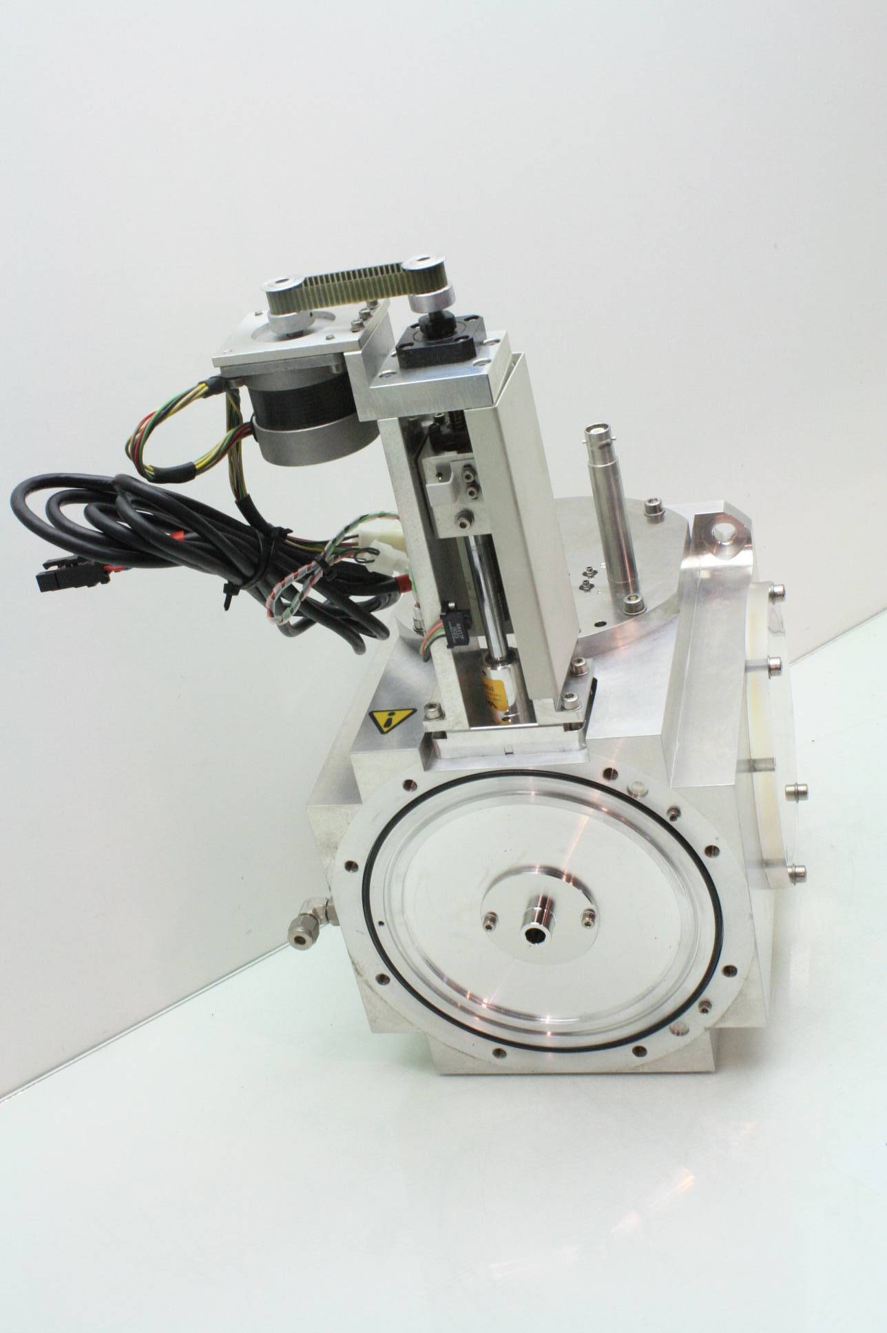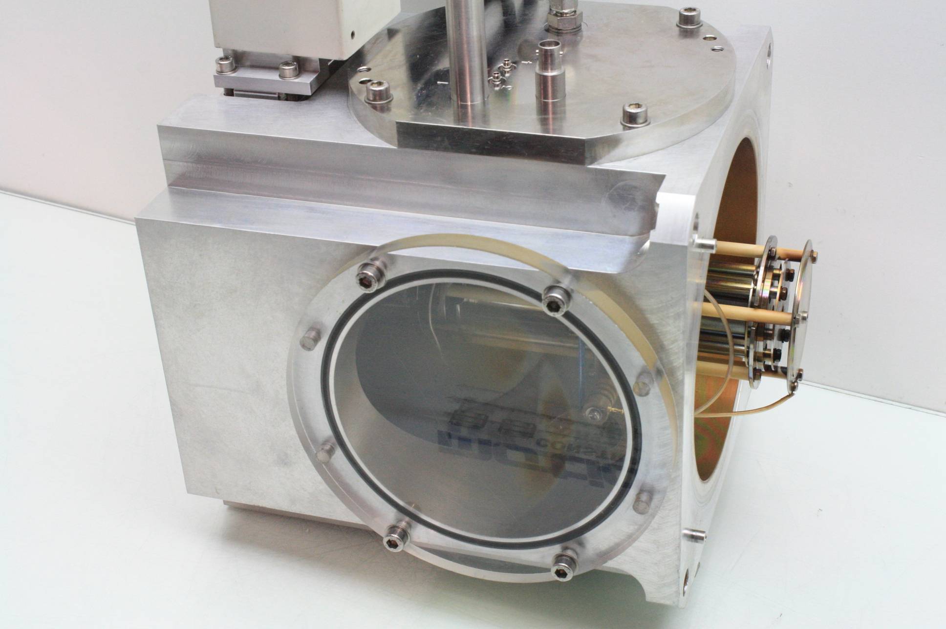 This process head was on the end of a chamber from a Kratos Maldi series mass spectrometer. This has a VAT linear actuator and feedthrough for putting test samples into the chamber, what appears to be a PMT sensor head and vacuum viewports mounted on a machined aluminum chamber end as shown. The spectrometer was functional when removed and was just switched out for newer equipment. Everything here appears to be in excellent functional and cosmetic shape as shown.
