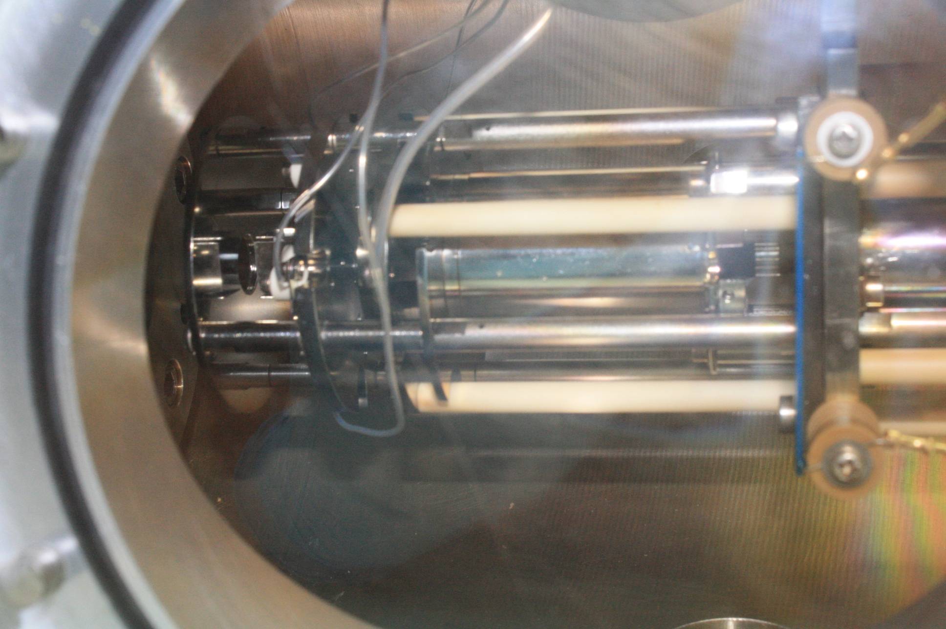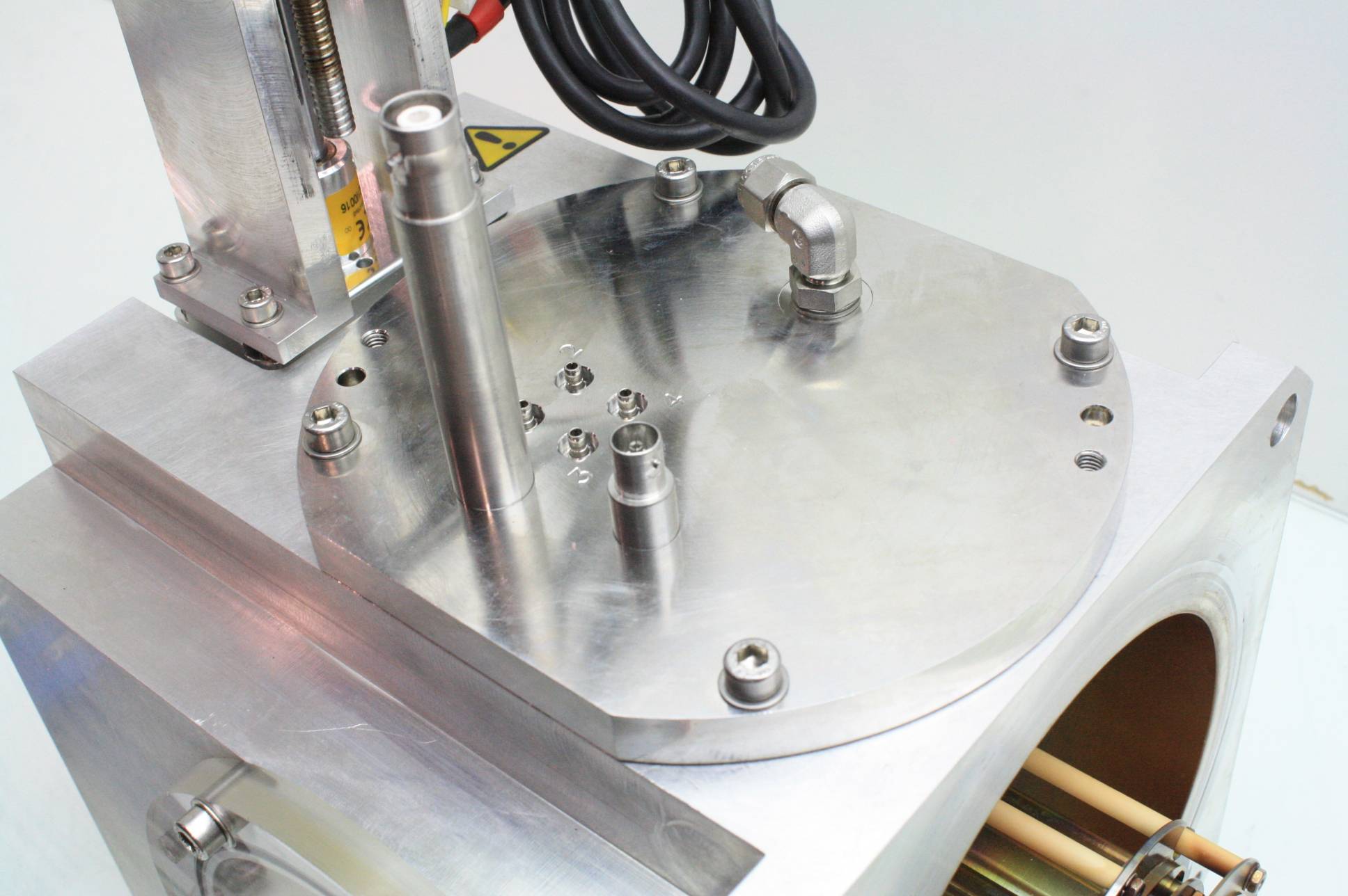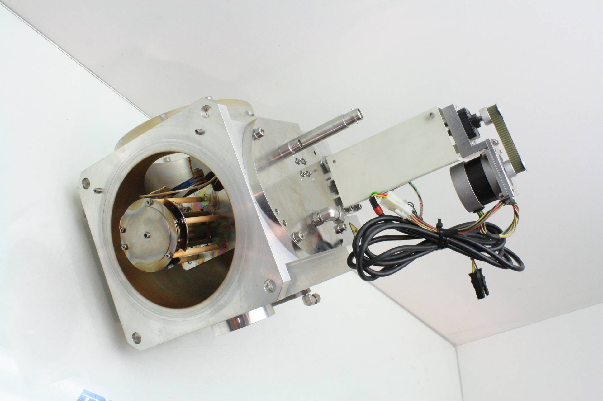 This process head was on the end of a chamber from a Kratos Maldi series mass spectrometer. This has a VAT linear actuator and feedthrough for putting test samples into the chamber, what appears to be a PMT sensor head and vacuum viewports mounted on a machined aluminum chamber end as shown. The spectrometer was functional when removed and was just switched out for newer equipment. Everything here appears to be in excellent functional and cosmetic shape as shown.