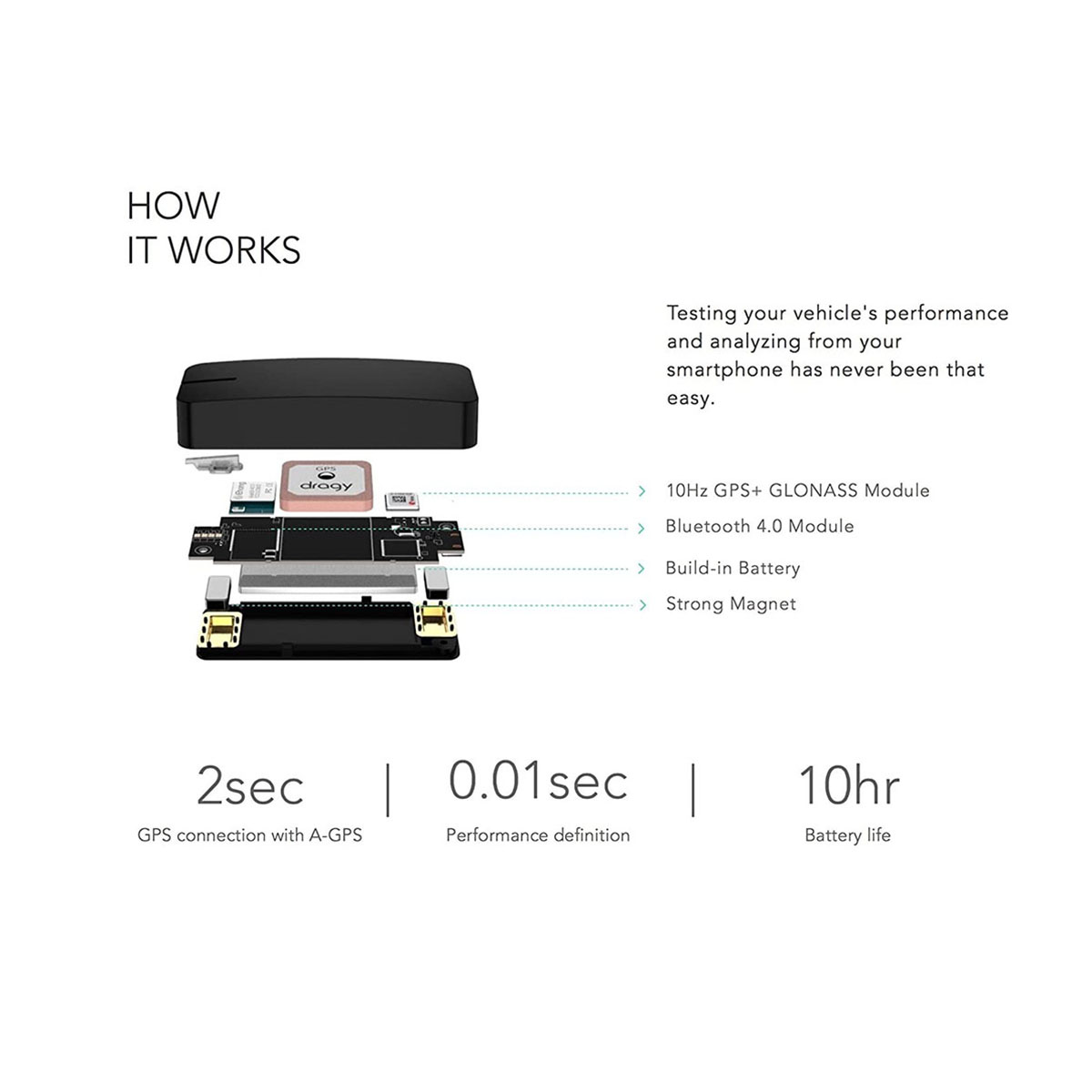 Dragy uses high speed GPS satellites to accurately measure your vehicles performance within 1/100th of a second, producing identical results to the much more expensive and cumbersome VBOX system, in a less expensive and easier to use package.
