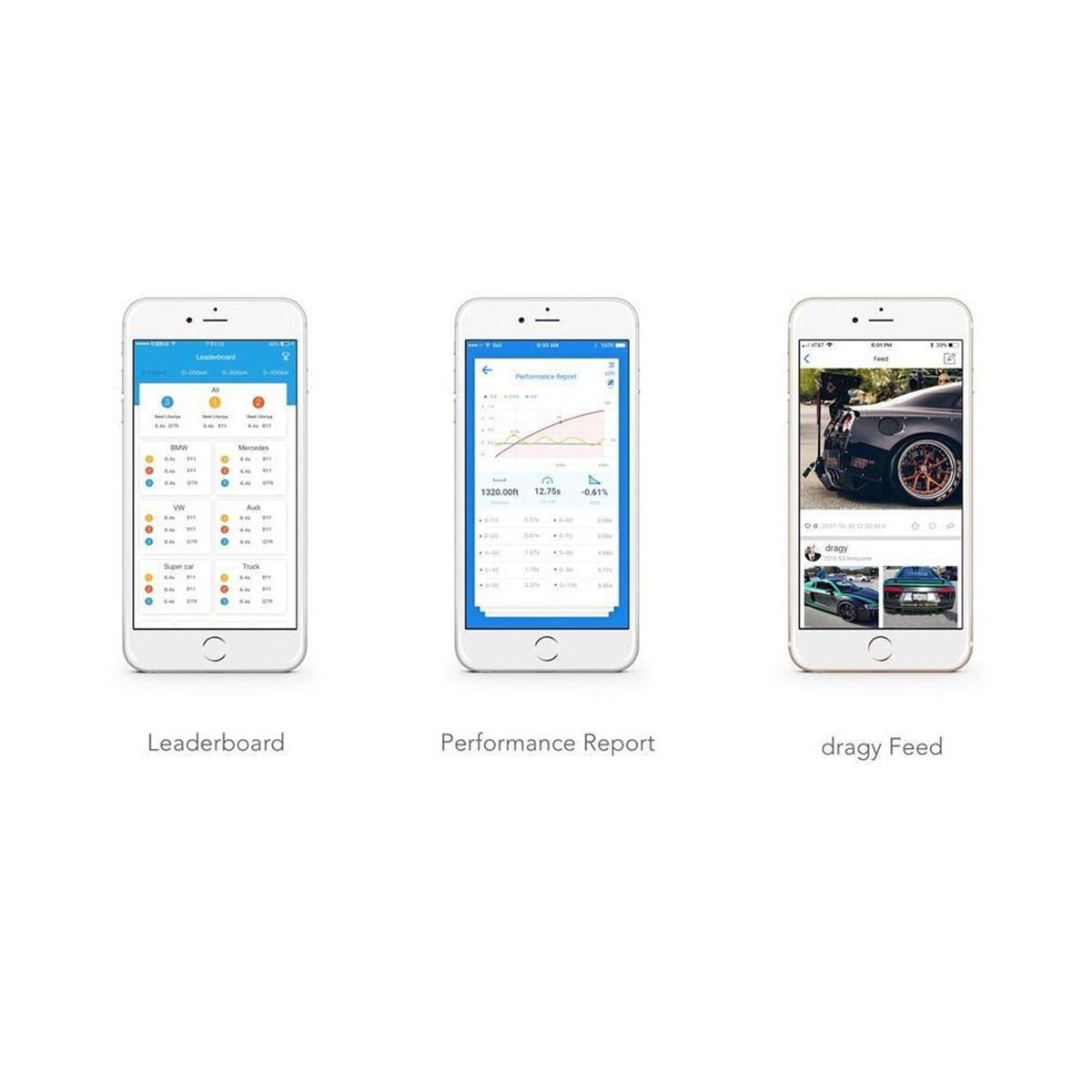 Runs are saved in both metric and SAE formats, allowing comparisons of 100-200kmh and all metric equivalents. You can also define your own performance windows for measuring both trap speeds and/or elapsed times, time to brake performance such as 100-0, and much more. The system can be run simultaneously with JB4 Mobile and other bluetooth apps. Requires the Dragy app which is available free of charge for both iOS and Android.