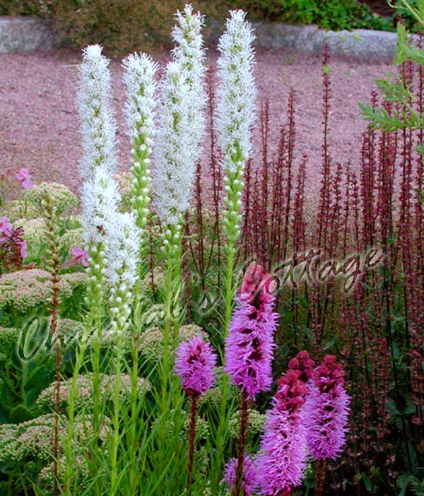 Liatris Spicata También conocido como "Blazing Star ' o 'Gayfeather'. Creciendo a una altura de alrededor de 60 cm. Cuando las flores florecen van a añadir un impresionante despliegue de flores-bebé de color rosa a su jardín,