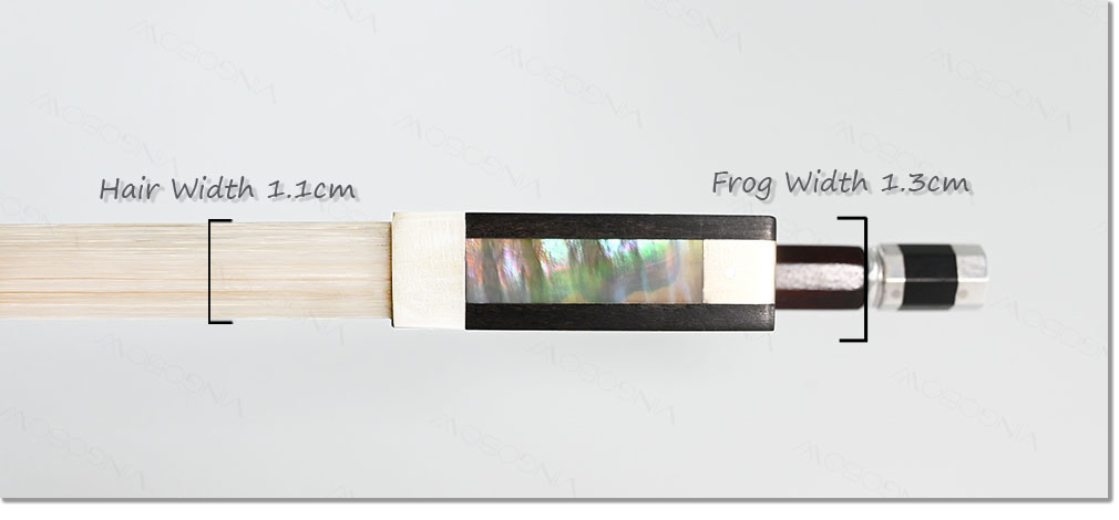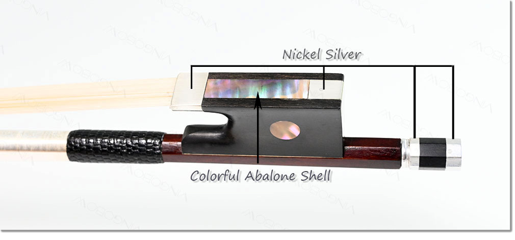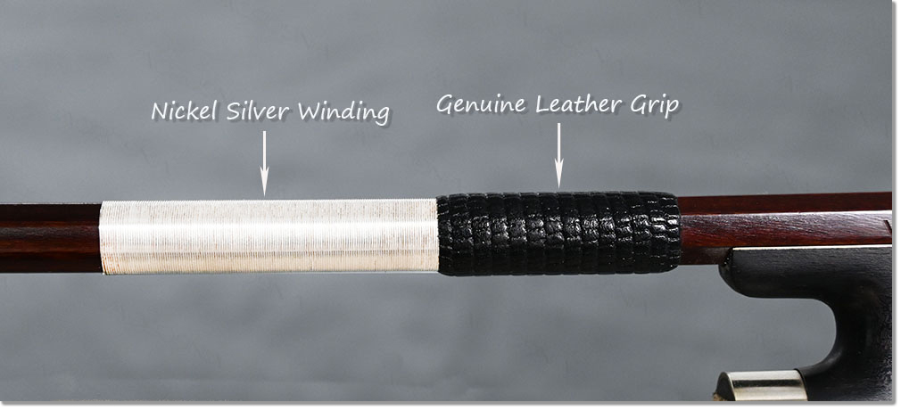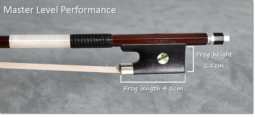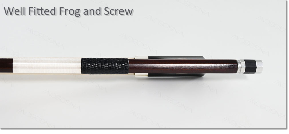 The bow is dark-brown Pernambuco stick, air dried more than fifteen