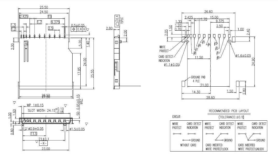 ![]() Type:SD Memory Card PCB Socket Size(L*W*H):25.5 * 27.5 * 2.8mm Shell Material:Brass Contact Terminals: Brass Weigth:2g |