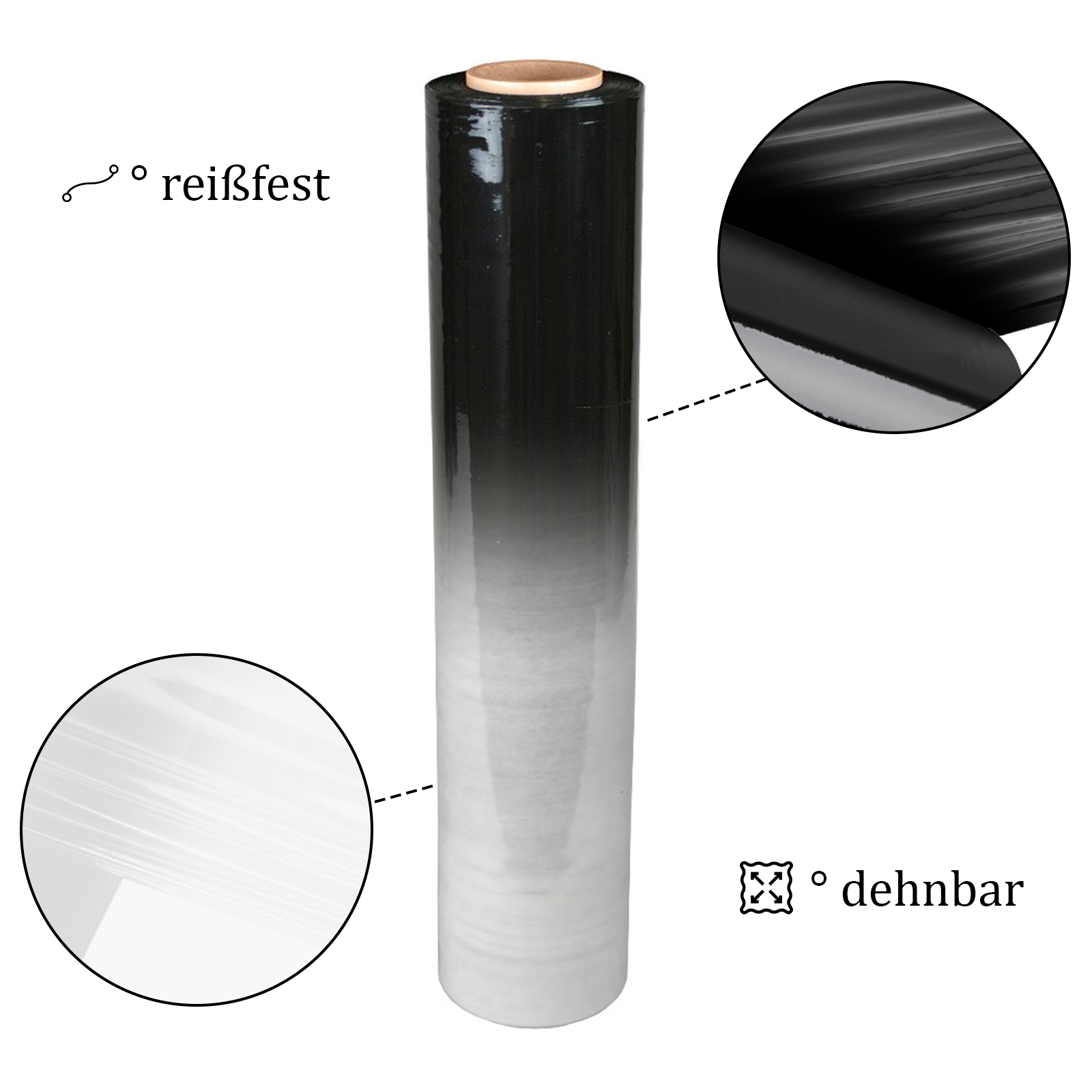 Um Ihnen absolut strapazierfähige und robuste Stretchfolien liefern zu können, wird für die Herstellung der Folien nur hochwertiges Polyethylen verwendet. Polyethylen ist ein teilkristalliner und unpolarer Thermoplast, der für seine Festigkeit und Härte bekannt ist. Allerdings ist PE für seine hohe Dehnbarkeit und Reißfestigkeit ebenfalls bekannt. Aus diesem Grund eignet sich PE bestens für die Herstellung von Stretchfolien. Damit Sie die beste Auswahl an Stretchfolien haben, bieten wir Ihnen verschiedene Stärken an.