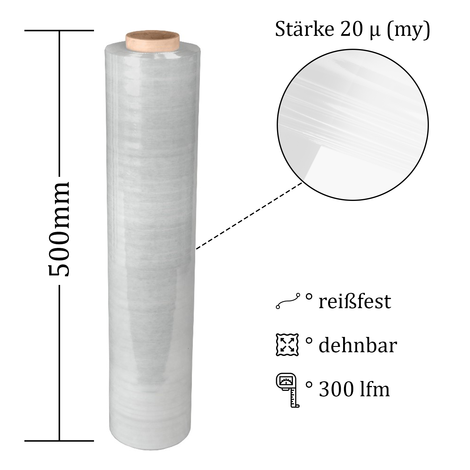 Eine Handstretchfolie soll Ihnen die Warensicherung vereinfachen und Sie während Ihres Arbeitstages bestens unterstützen. Damit dies problemlos möglich ist, sollte die Rolle nicht zu groß und zu schwer sein. Unsere hochwertigen Handstretchfolien haben eine Breite von 50 cm, die Sie ganz einfach tragen können ohne sich zu überlasten. Mit den 300 Laufmetern können Sie trotzdem viele Waren sichern. Nutzen Sie die widerstandfähigen Stretchfolien und verbessern Sie Ihren Warenversand.