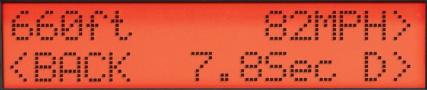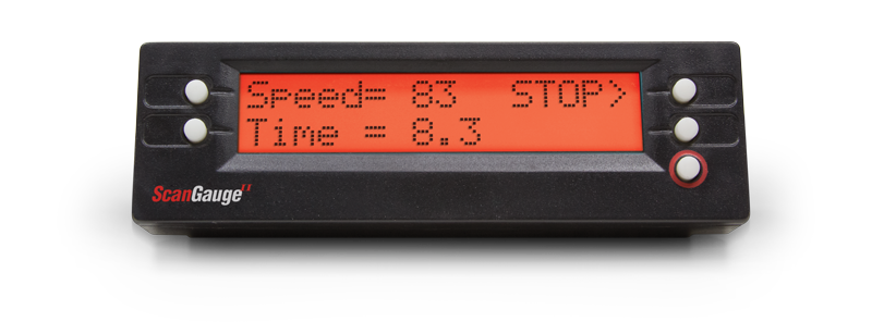 Once the ScanGauge begins recording, it will display your time and speed in real-time. You can stop the recording at any time by pressing the STOP button