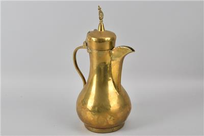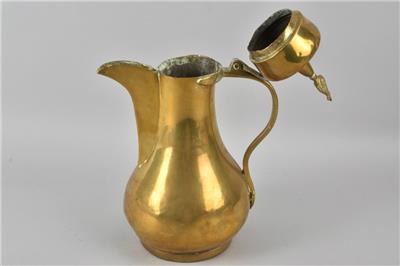: Beautiful and very interesting antique coffee kettle made from hand-hammered brass tin-covered inside.