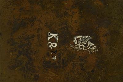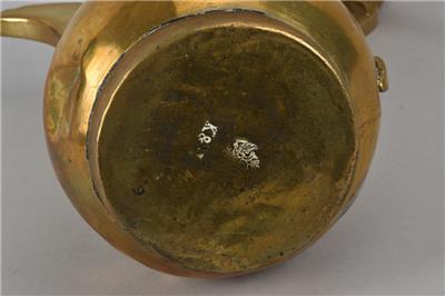 Nice elegant shape in Middle-Eastern style. Marked with Russian Imperial Double-Headed Eagle and the initials "K&M". I was not able to identify the factory, but the double-headed eagle is clearly the Russian one with St.George in the middle shield. These Eagle marks were usually used by several factories in Tula - the center of Russian Imperial brass production. Manufactured in 1850-1900.