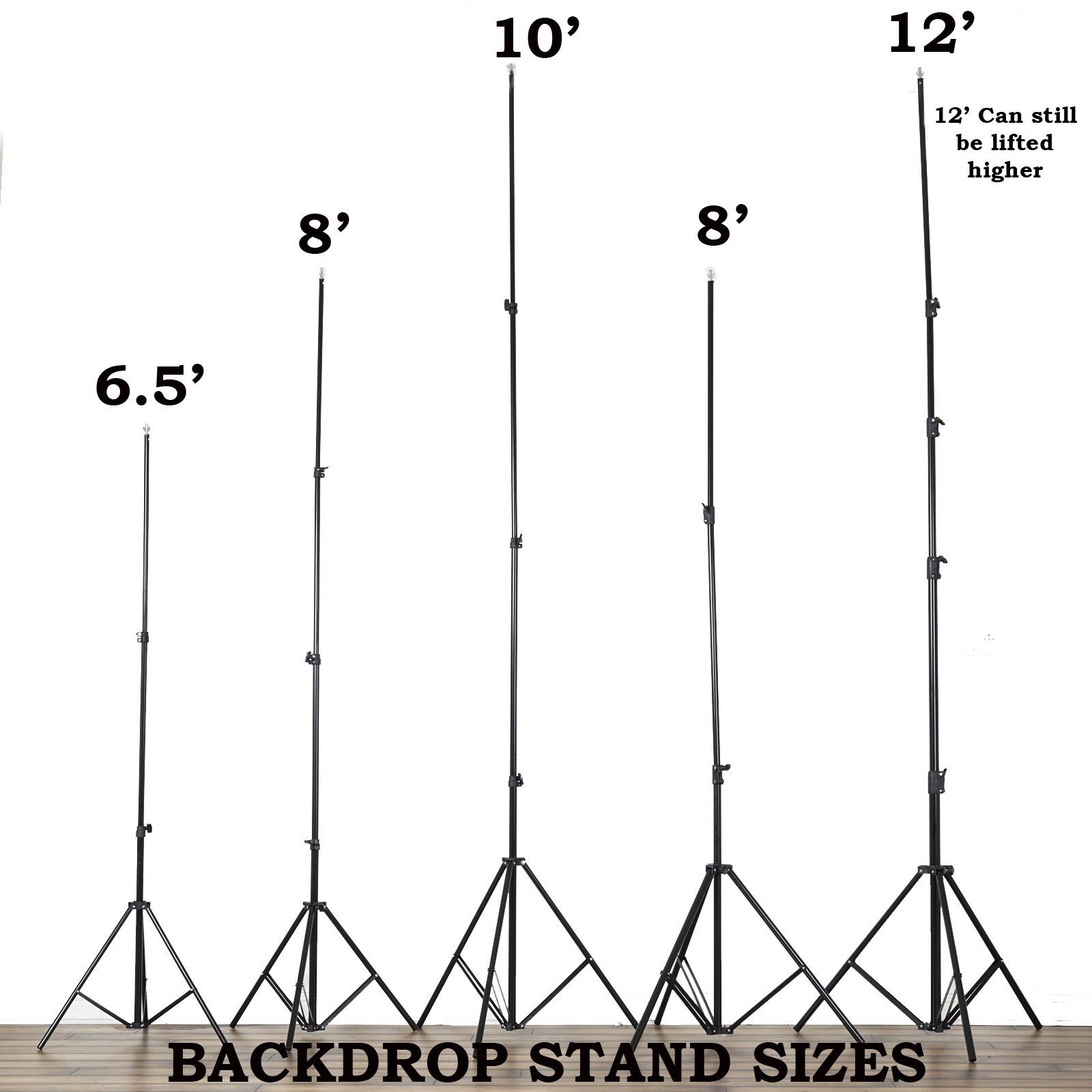 Backdrop Stand Kit measures approx. 12 ft wide x 12 ft tall.