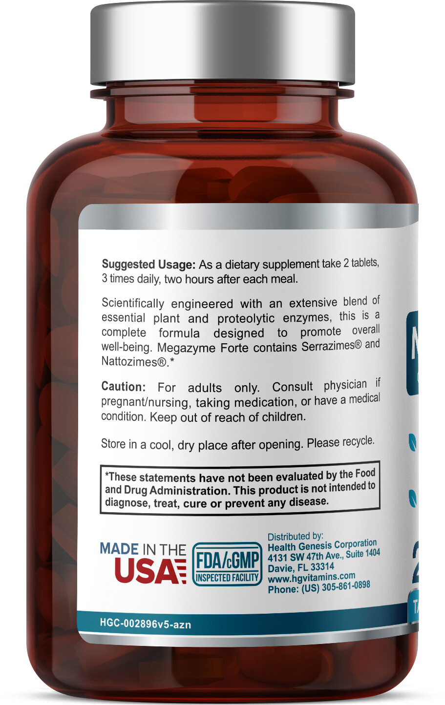 Description Scientifically engineered with an extensive blend of essential plant and proteolytic enzymes, this is a complete formula designed to support overall well-being. Megazyme Forte Plus contains Serrazimes and Nattozimes.