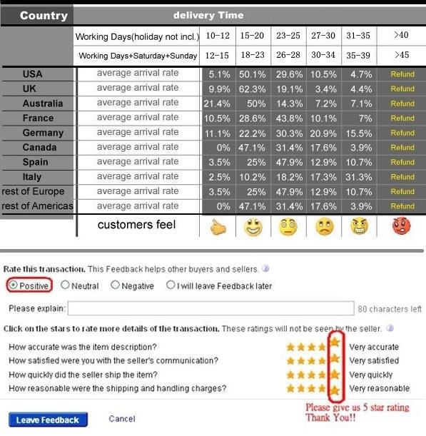 Buyers' Information: We strive our best to provide you the most reliable, affordable way of shipping service. But sometimes international delivery is highly depended on the courier company and local customs/duties. If you do not receive your item on time, please contact us immediately for further assistance..