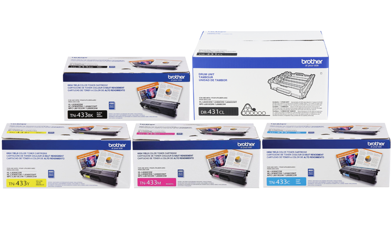 OverviewBrother TN433BK, TN433C, TN433M, TN433Y High Yield Toner Cartridge Set with DR431CL Drum Unit has been designed to work with a range of Brother printer(s). Manufactured by Brother. |