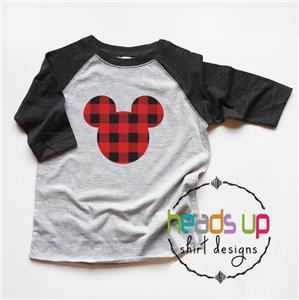 This adorable "Buffalo Plaid Mickey Head" shirt is perfect for your little one. Use it as a way to to celebrate the special day at Disneyland or wear on any day! It also makes a great gift! It is made using high quality heat transfer vinyl and come on a gray/smoke sleeve shirt.