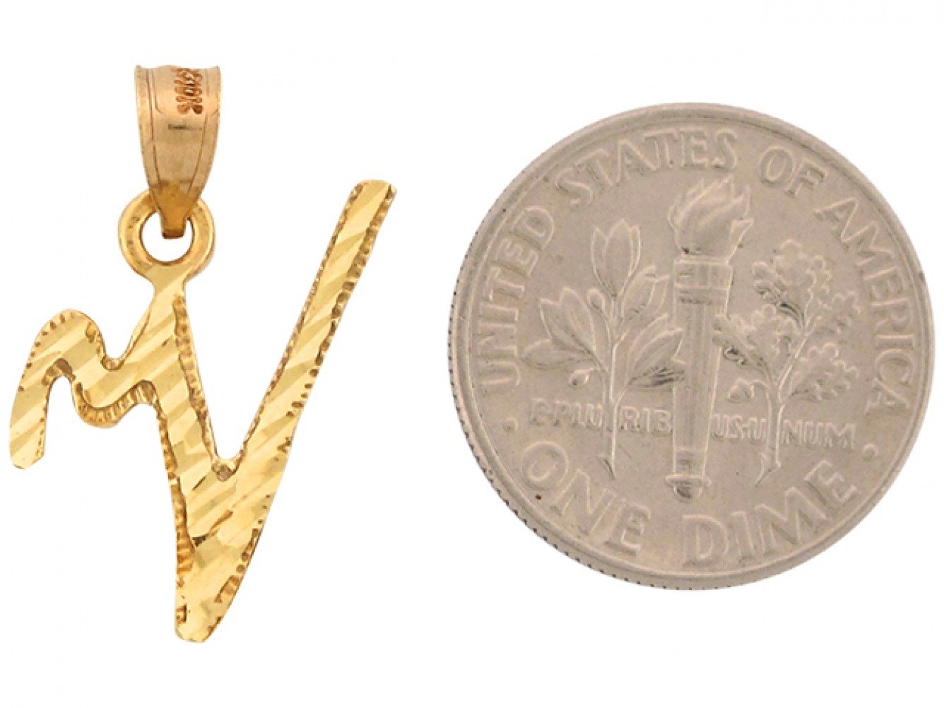 10k or 14k Gold 2.32cm Fancy Script Letter V Diamond Cut Initial Charm Pendant