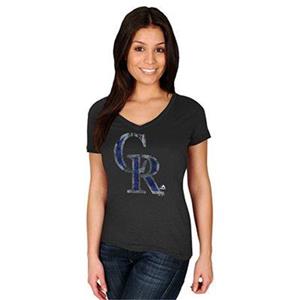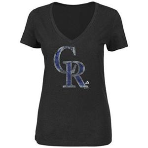 Description New with tags, this Colorado Rockies Majestic Keep Advancing women's v-neck black t-shirt features the team logo center of chest in a quality distressed screen print. This is a classic design with a vintage look on a high quality super soft 100% cotton tee. Cheering your team on is made easy with style and comfort. The shirt is from Major League Baseball's Genuine Merchandise and comes with full tags.