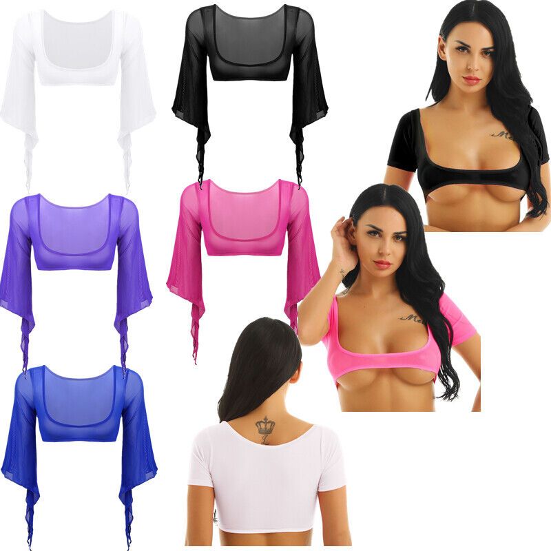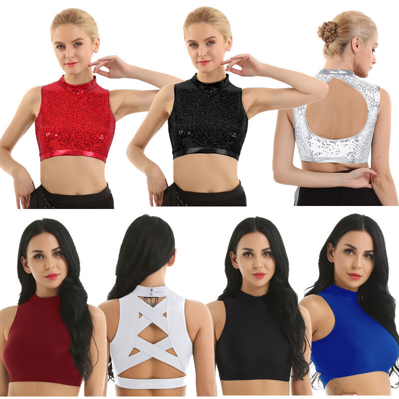 Women’s elegant dance crop top for ballet dance stage performance workout, pull on closure.