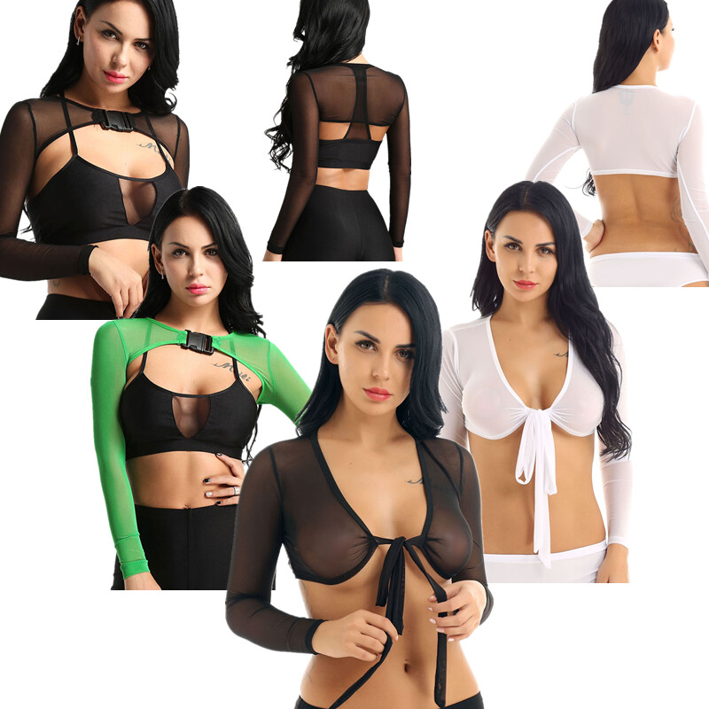 Women stretchy fishnet crop top, hollow out mesh see through design, pull on closure.