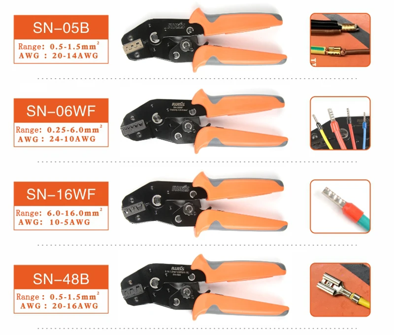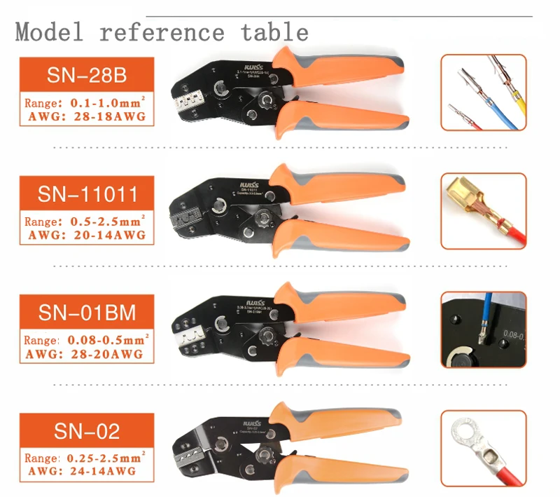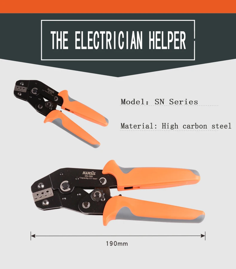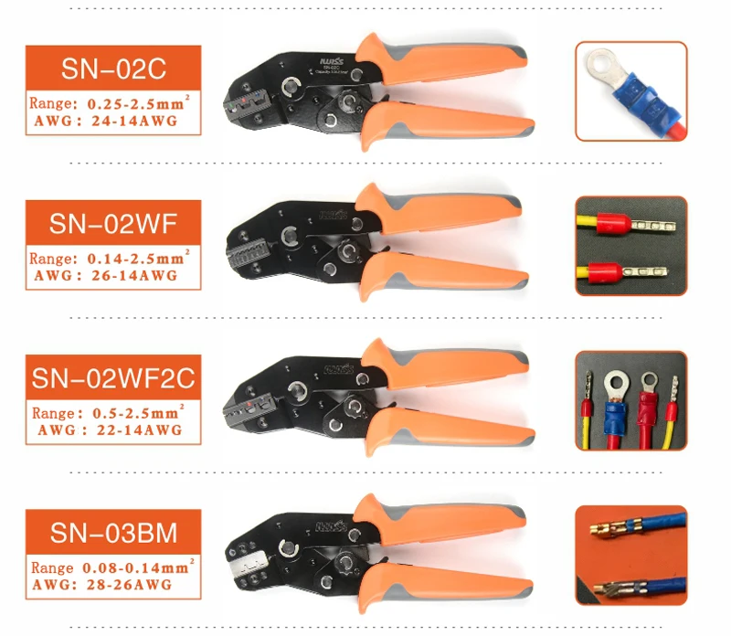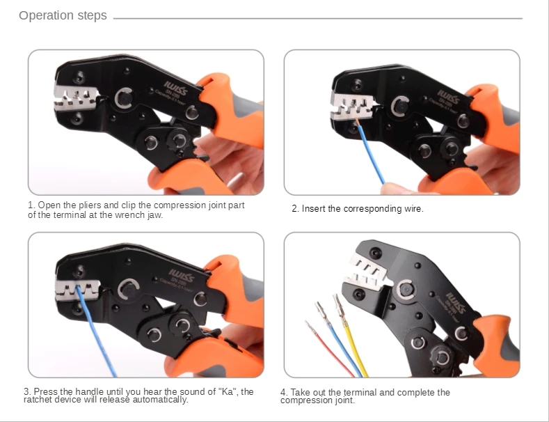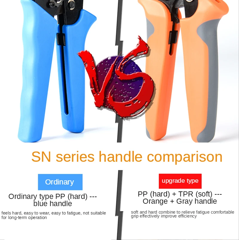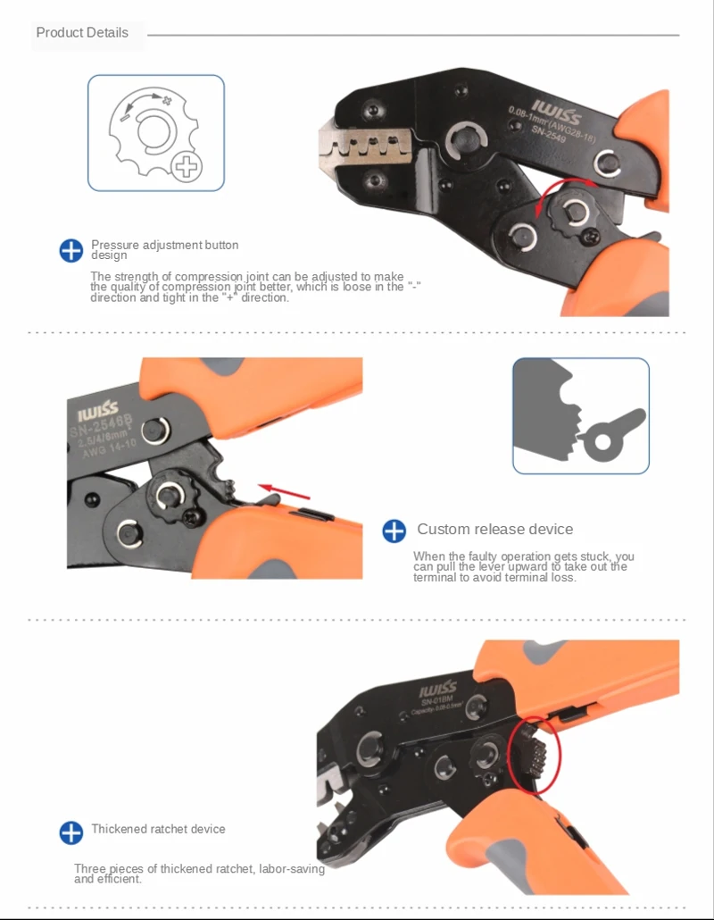 Product Features Precision Dies High crimping quality Integral Lock (Self-releasing Mechanism)Save 50% labor, high repeatability and longer service life TPR+PP Handle Material Non-slip, compact design and ergonomically shaped handles
